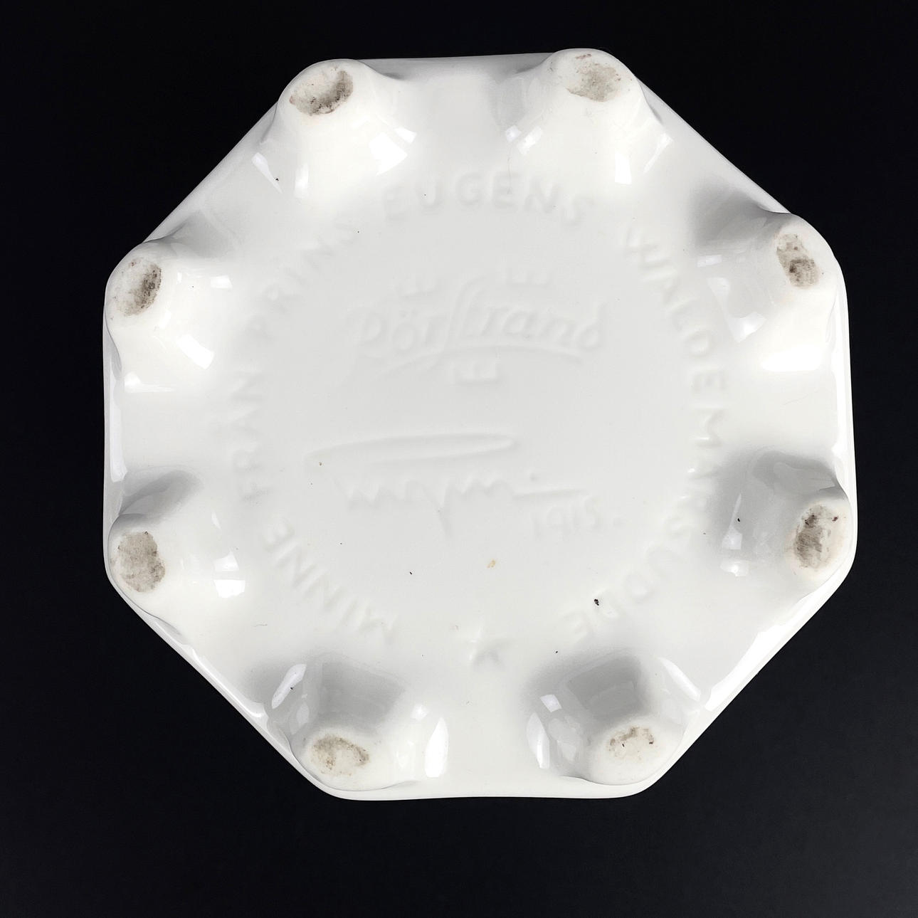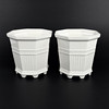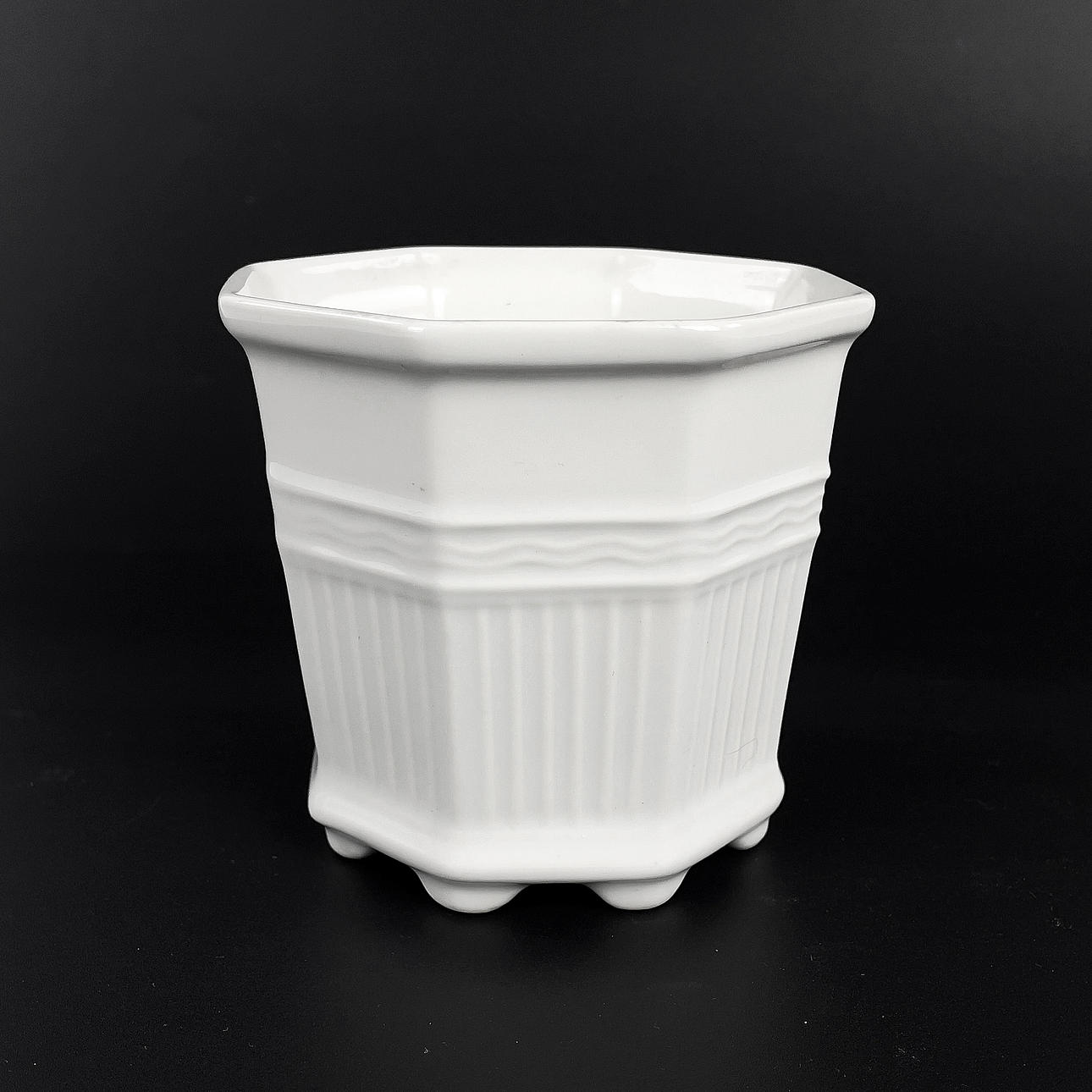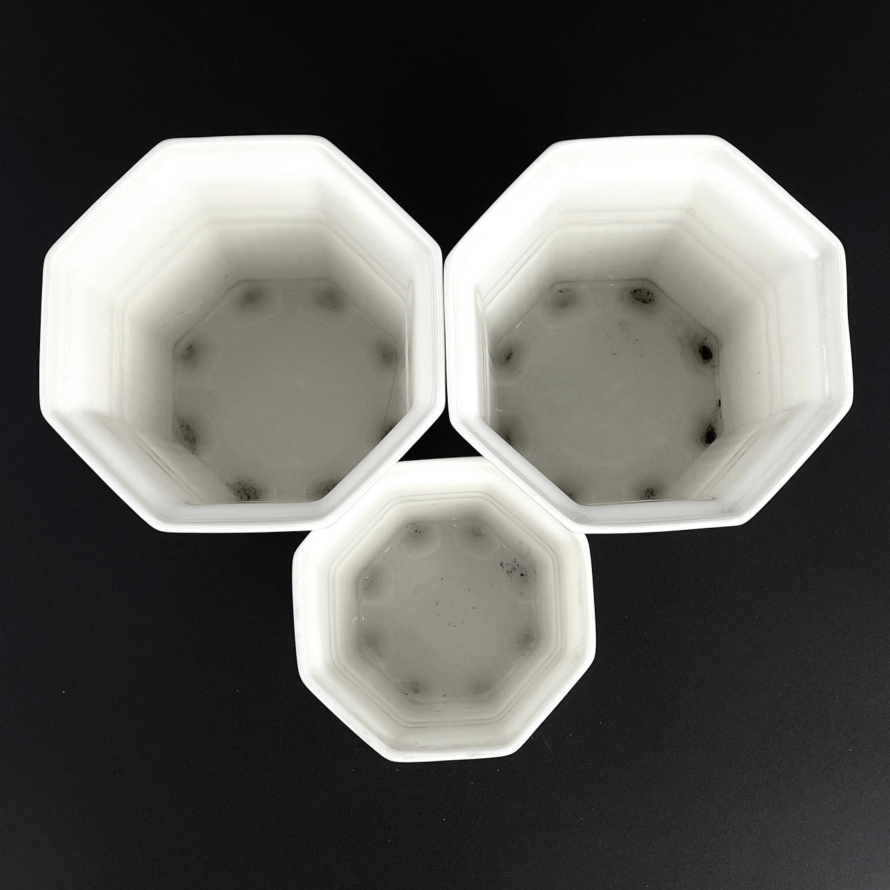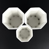 Tre ytterfoder i vitglaserat porslin. Djupstämplade undertill. Mått: ca 13x13 cm, höjd ca 13 cm Mått: ca 10x10 cm, höjd 9,5 cm.