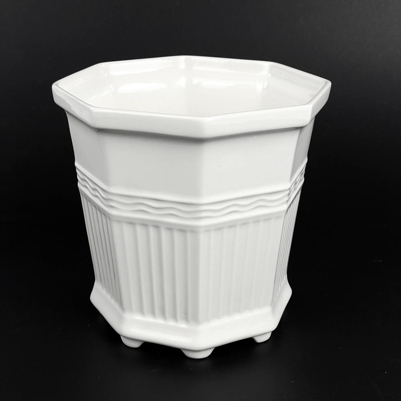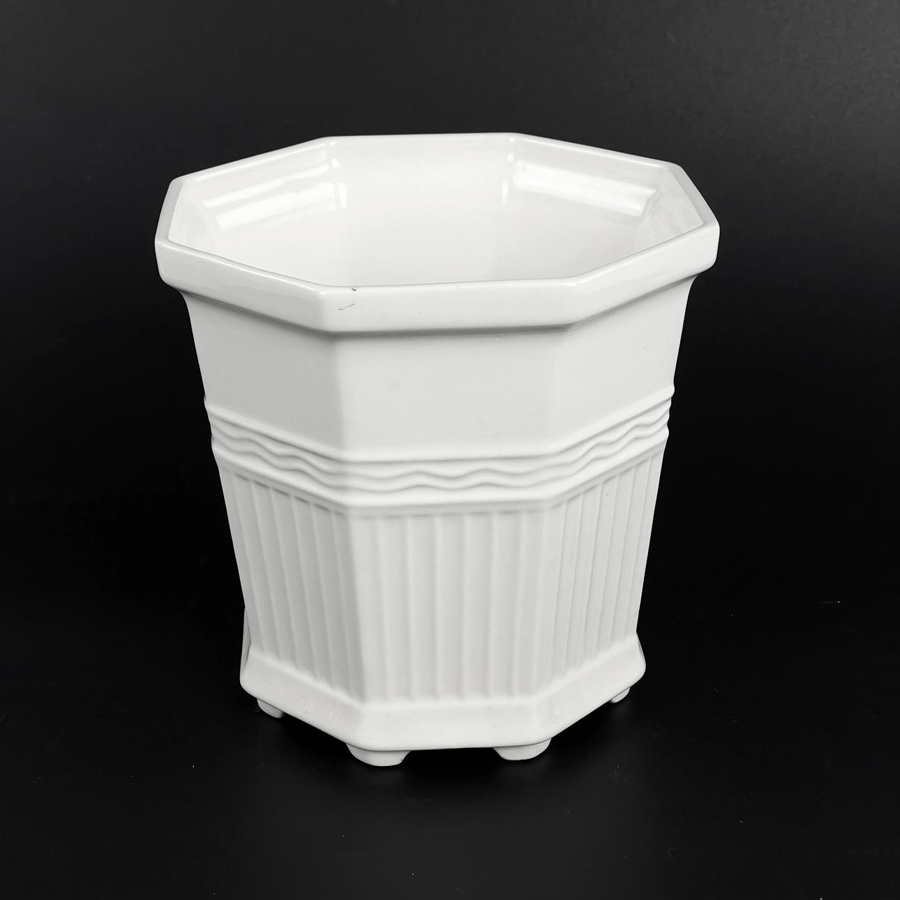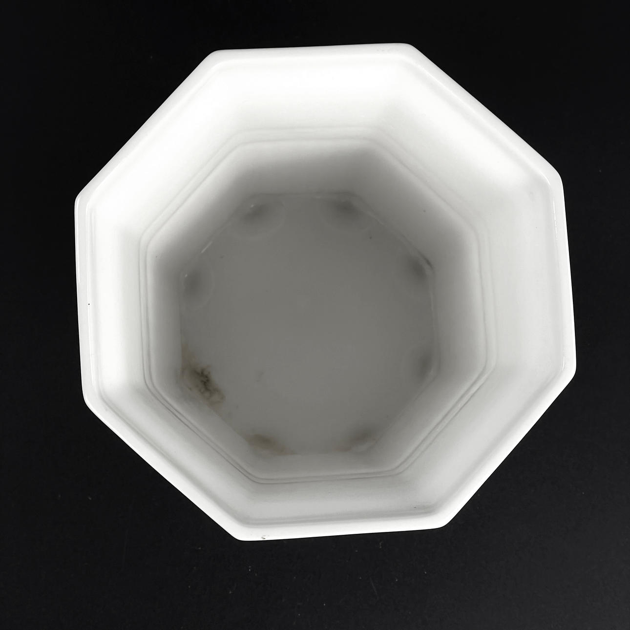 Vitglaserat porslin. Djupstämplade undertill. Mått: ca 15,5 x 15,5 cm, höjd ca 15 cm.