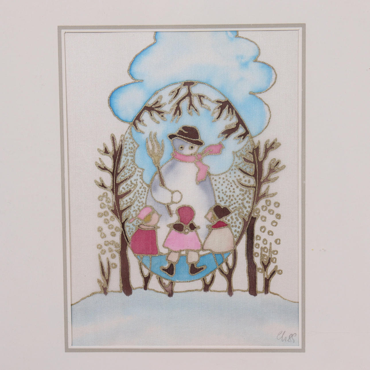 OIDENTIFIERAD KONSTNÄR. tavlor, måleri på textil, 3 st.