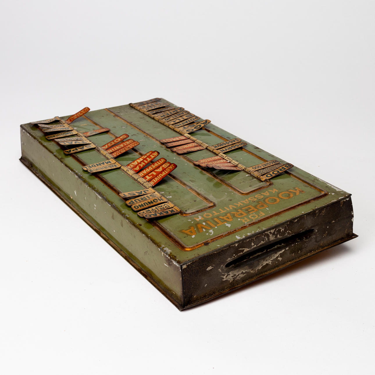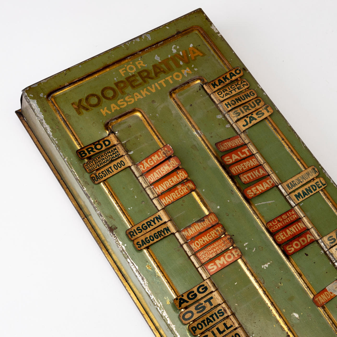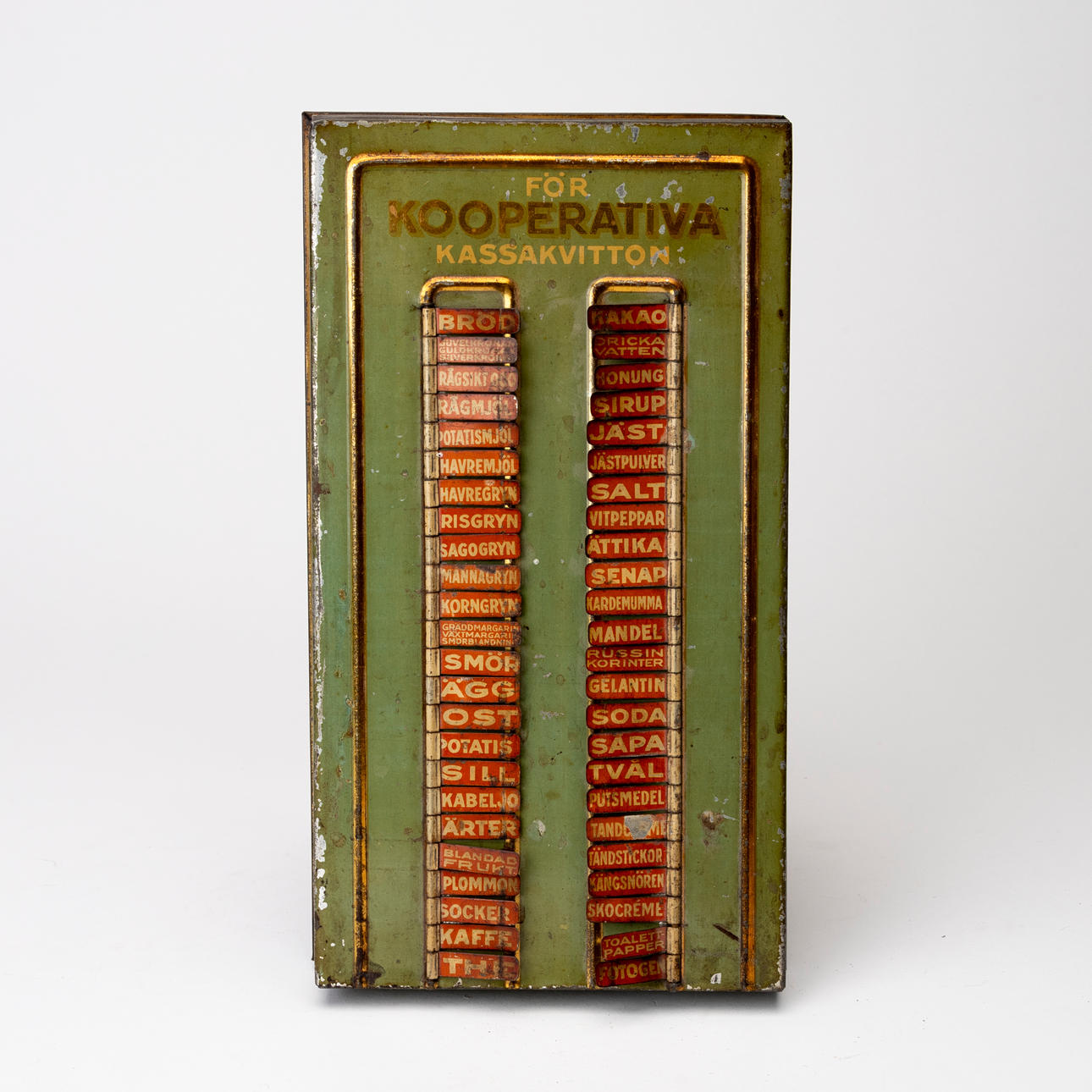 Något böjd/skev. Slitage, rost, färgbortfall. Märken.