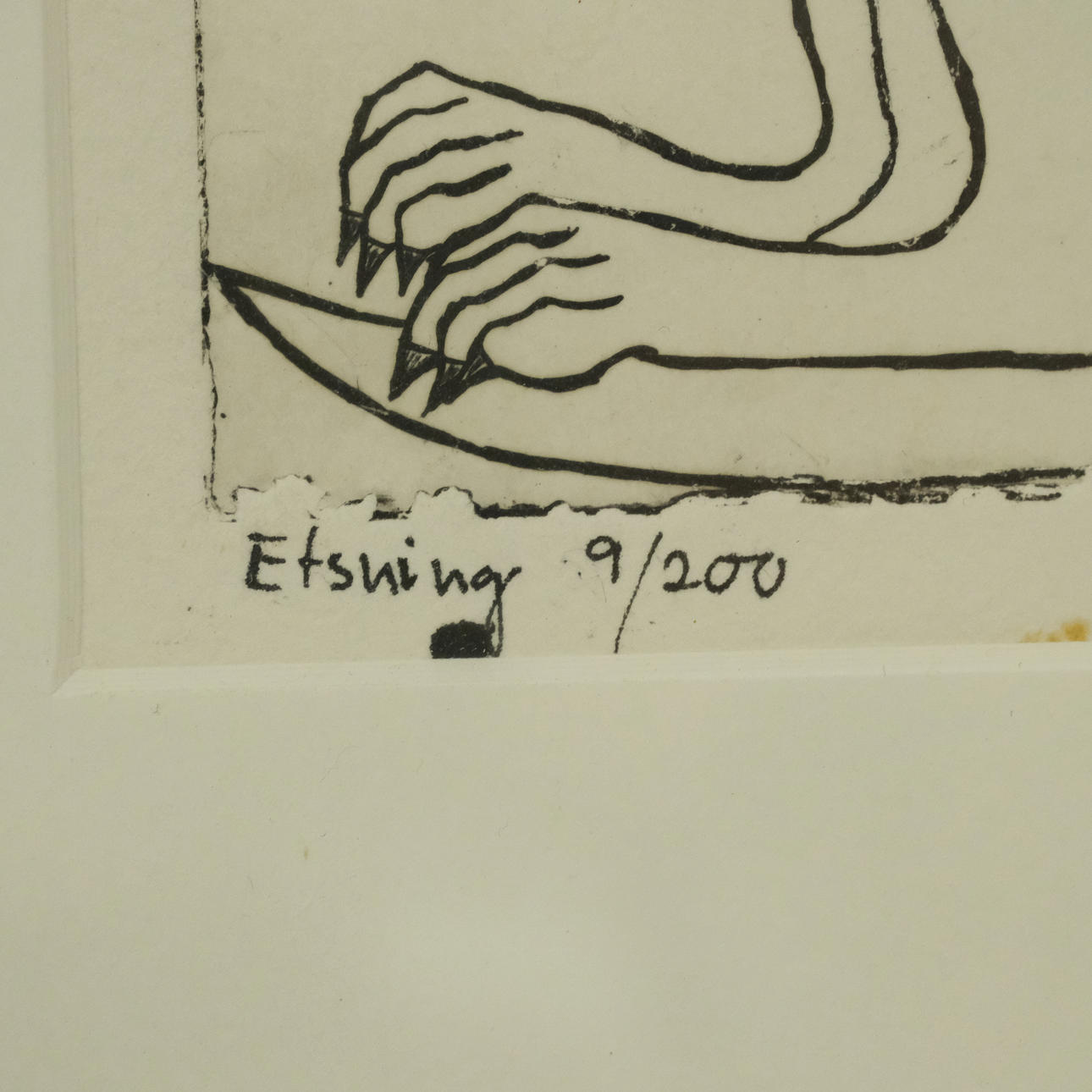 " Elddjur ", 9/200, mått 9 x 11 cm, rammått 24,5 x 29 cm samt 33/200, mått 17,5 x 11,5 cm, rammått 34,5 x 39 cm, signerade.