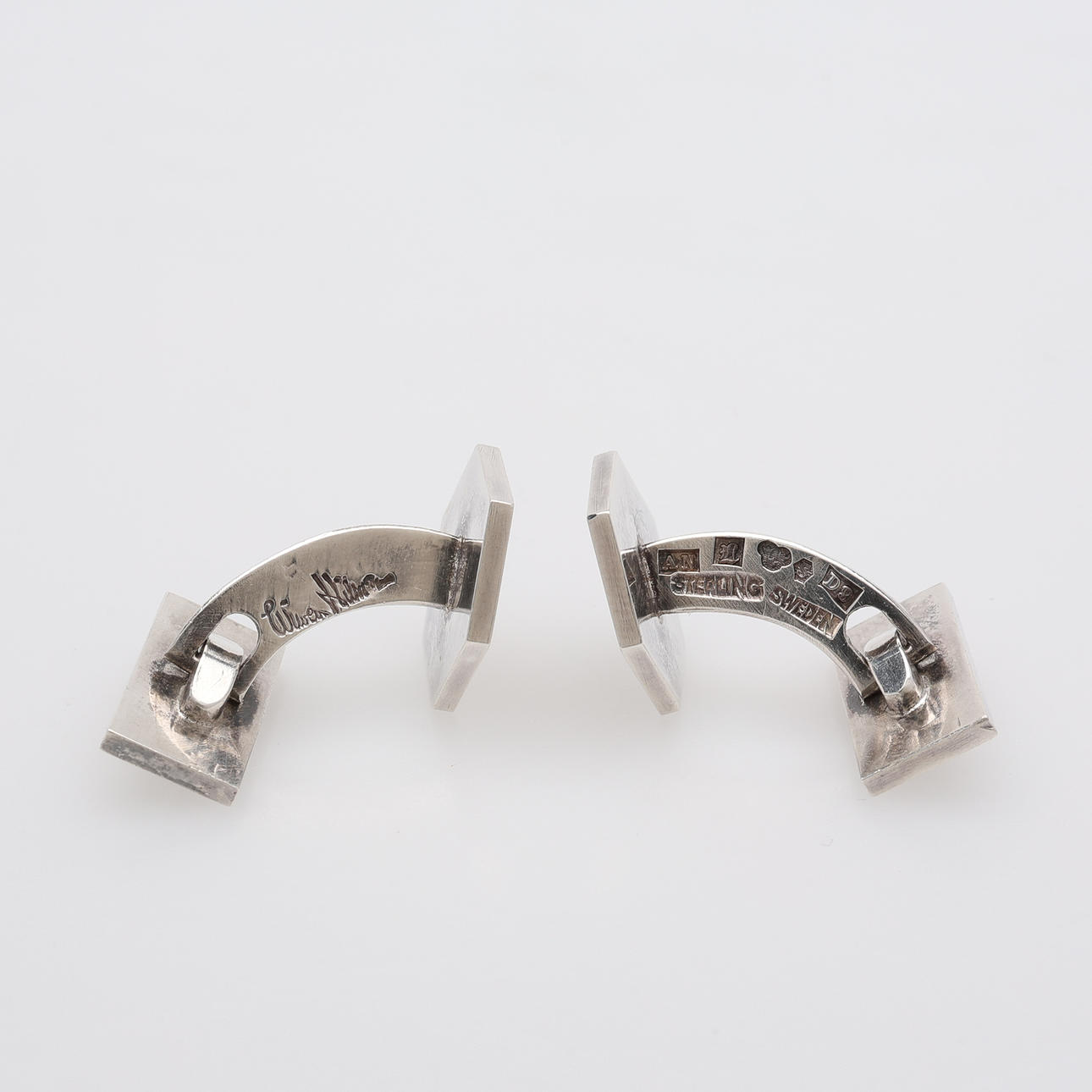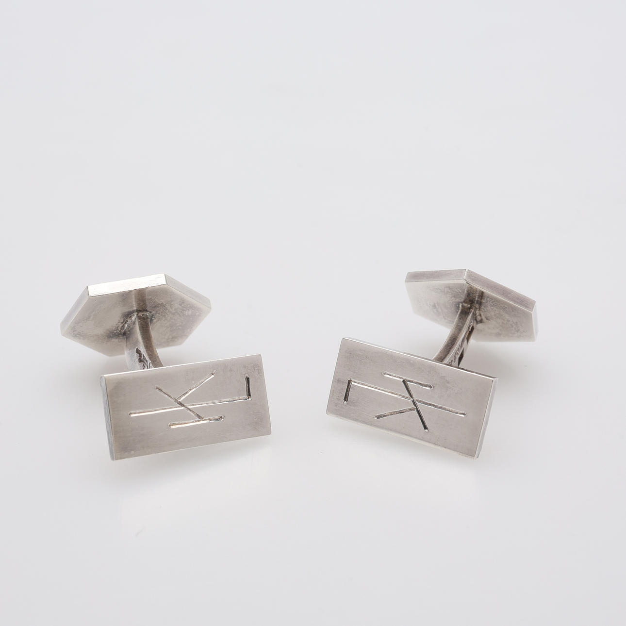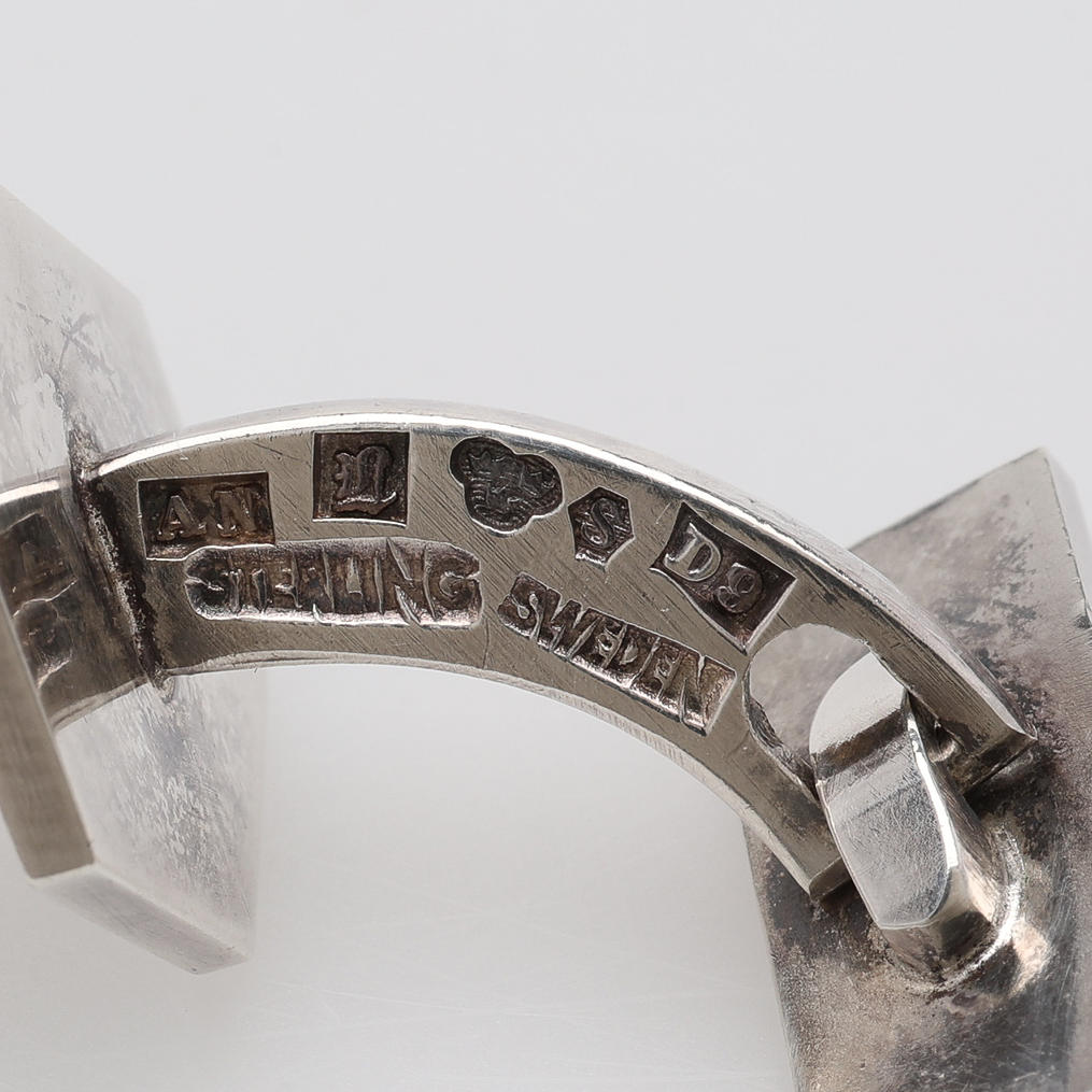 Hexagonal form, stämpelsignerade, Lund, 1954, monogramgravyr "KL/LK". Total vikt 11,8 gram Medföljer etui.