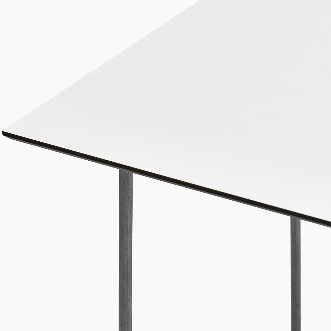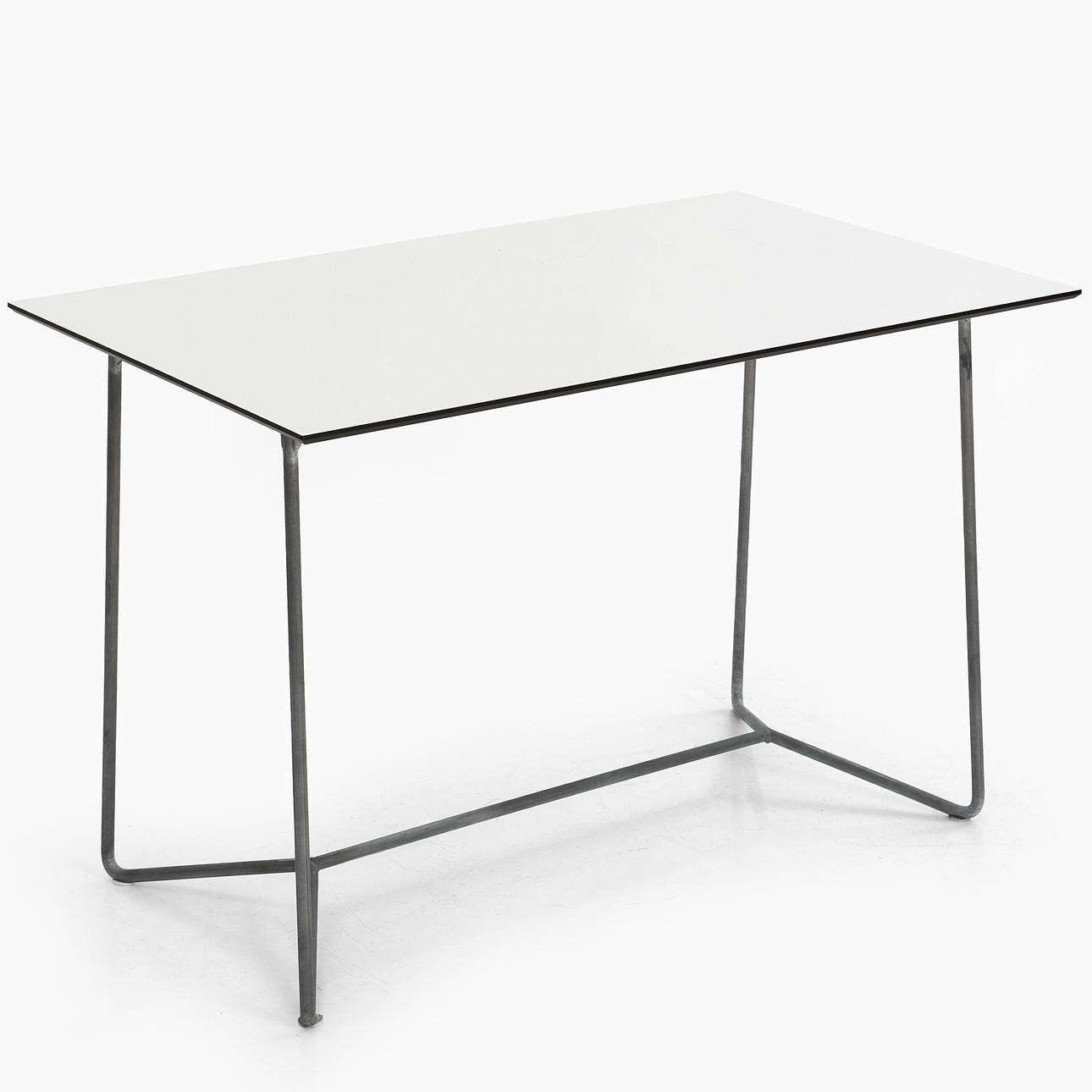 Skiva i vit laminat, stomme i förzinkad metall. Höjd: 71,5 cm. Bredd: 110 cm. Djup: 70 cm.