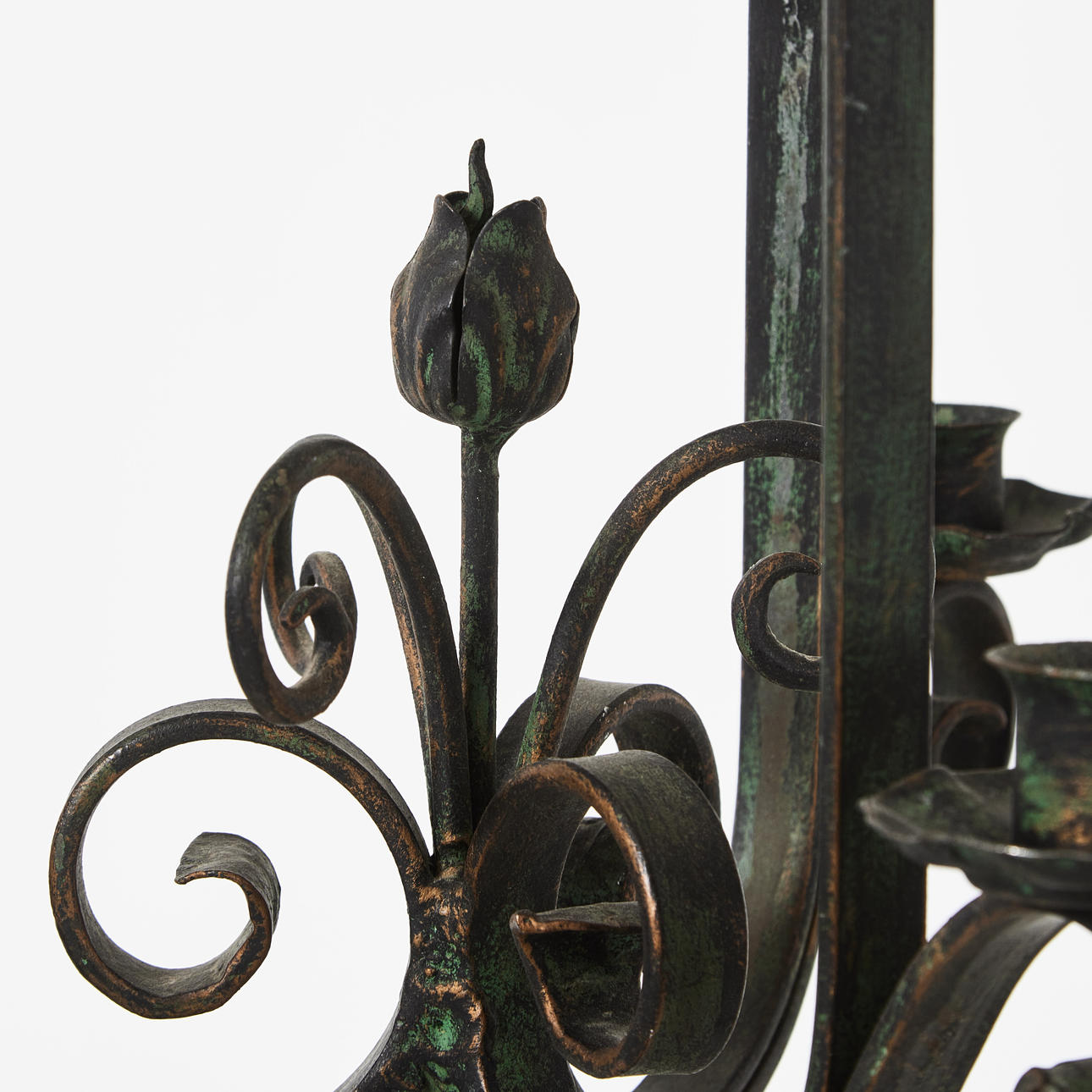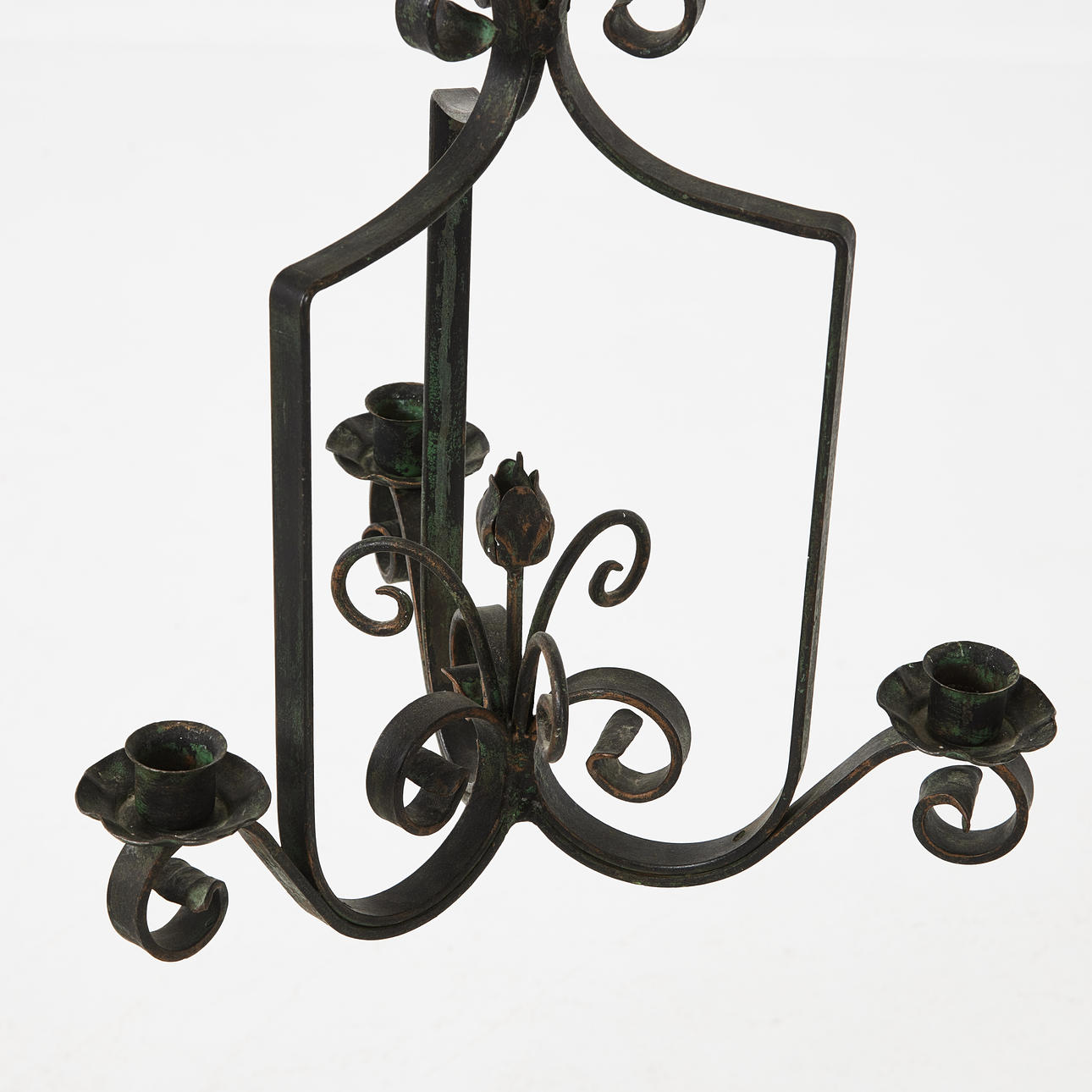 Grönpatinerat smide, möjligen Bjerkås armatur, 3 ljuspunkter, höjd 50, diameter ca 43 cm.
