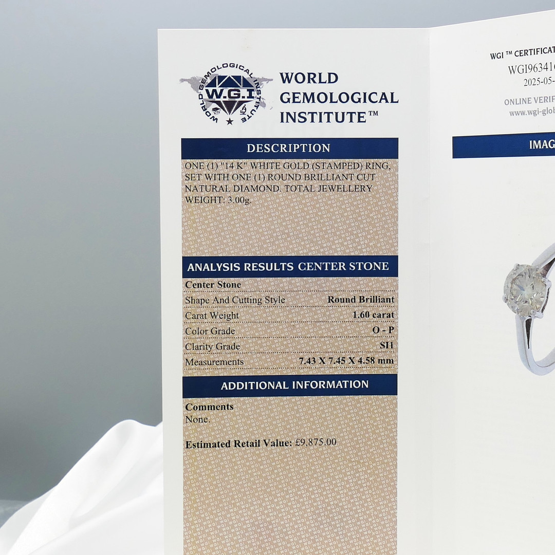 4970552. CERTIFIERAD 1,60CT DIAMANT solitärring.