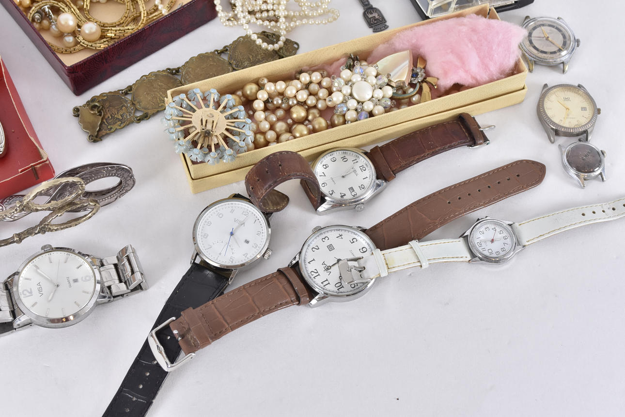 4970991. SAMLING BIJOUTERIER samt KLOCKOR, 1900-tal.