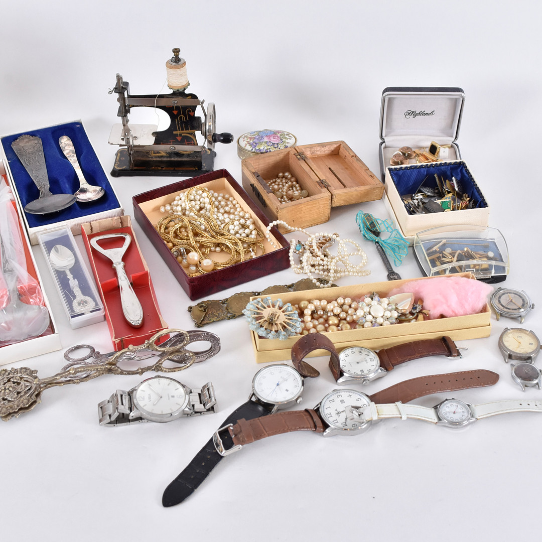 4970991. SAMLING BIJOUTERIER samt KLOCKOR, 1900-tal.