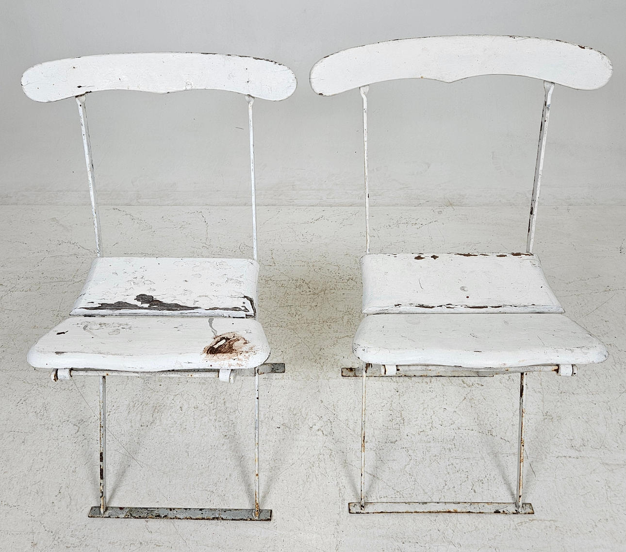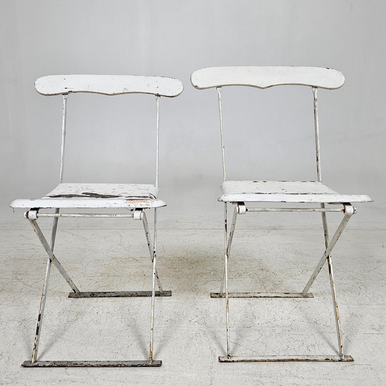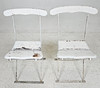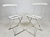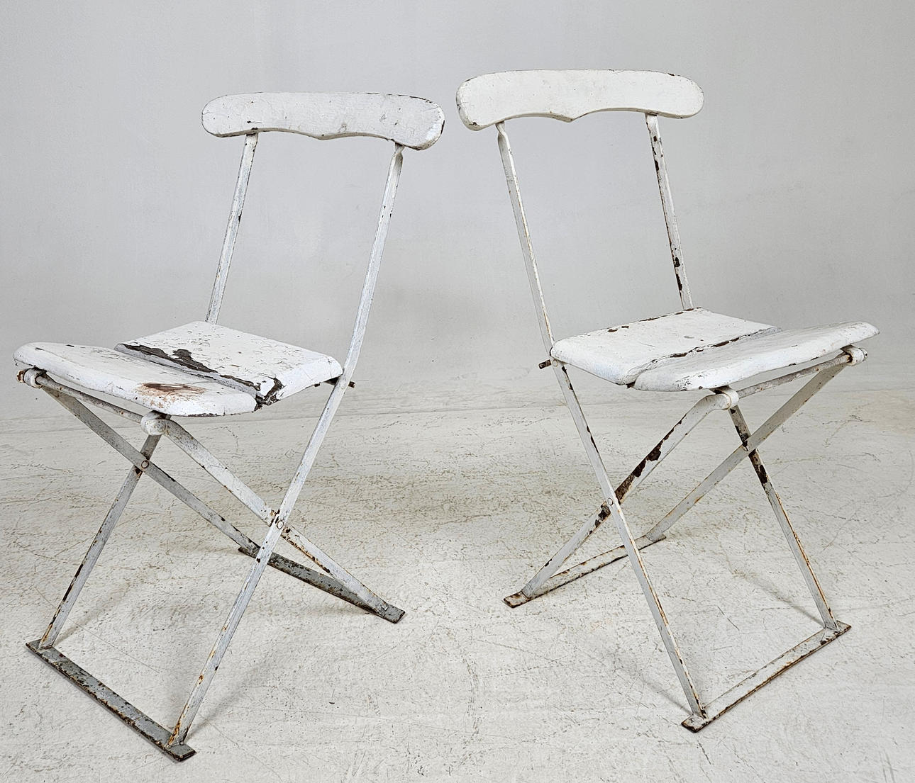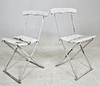 Metall och trä, bemålade, fällbara.