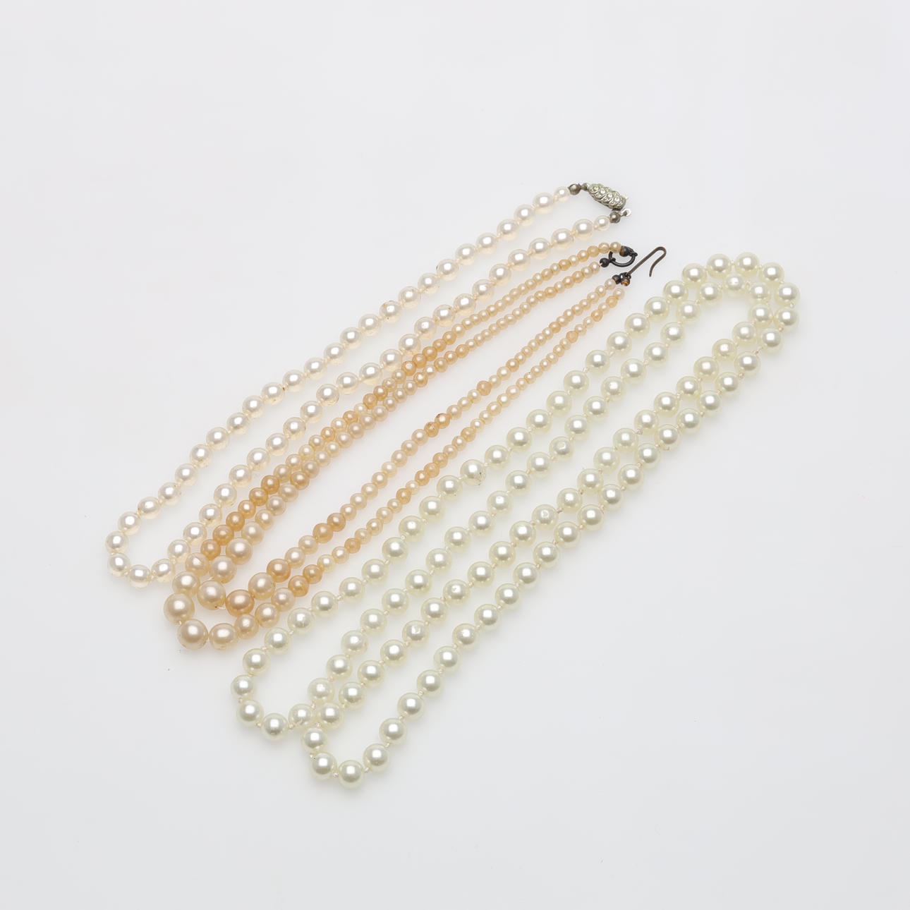 Armband, Pärlcollier mm Även sked och tärningar vikt silverföremål ca 45 gram.