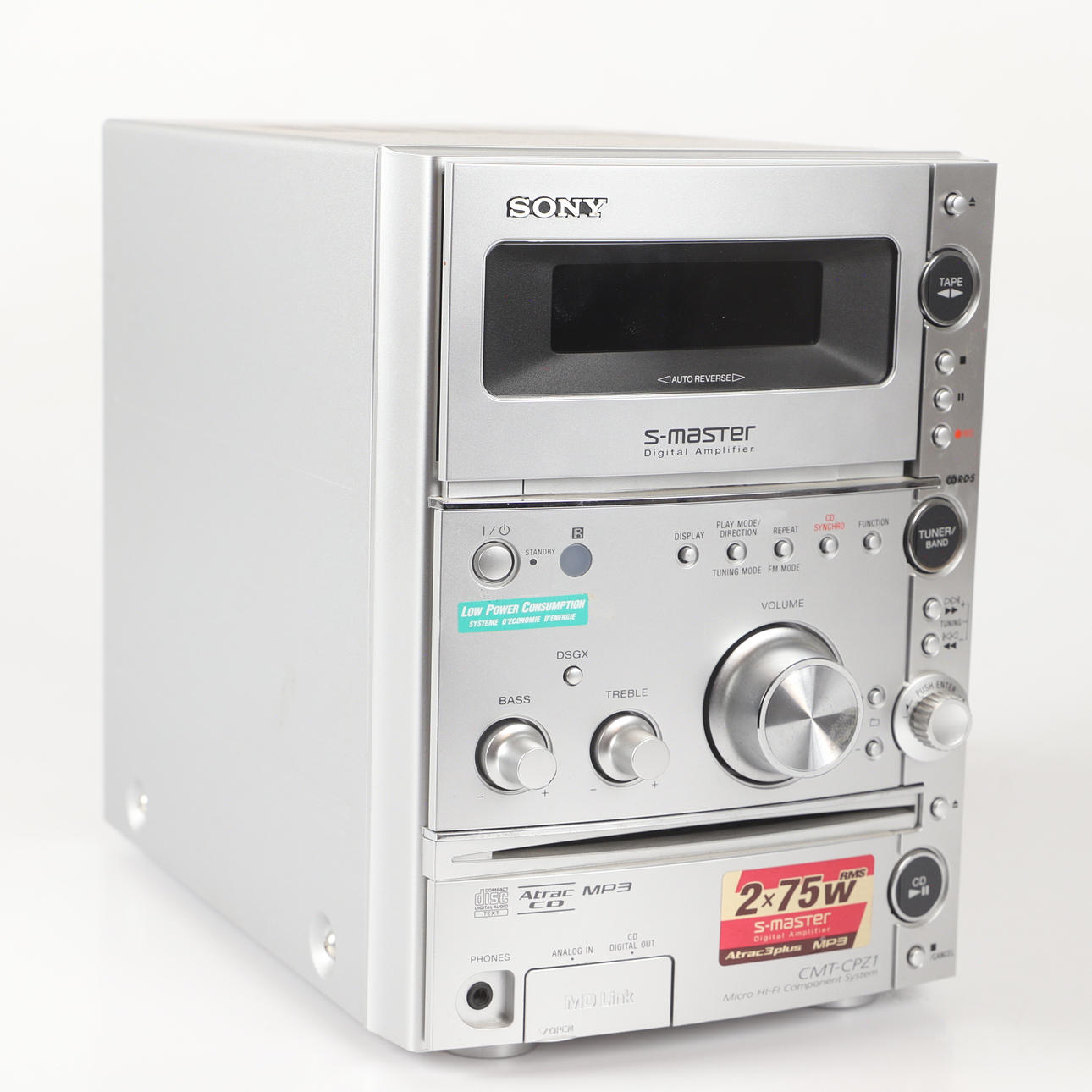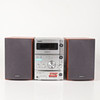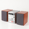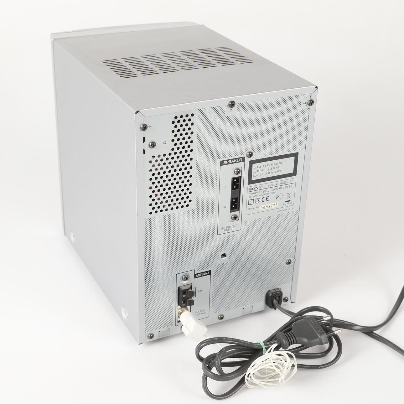 CD-/kassettspelare längd 17,5, höjd ca 24 cm 2 högtalare längd 16, höjd ca 24 cm.