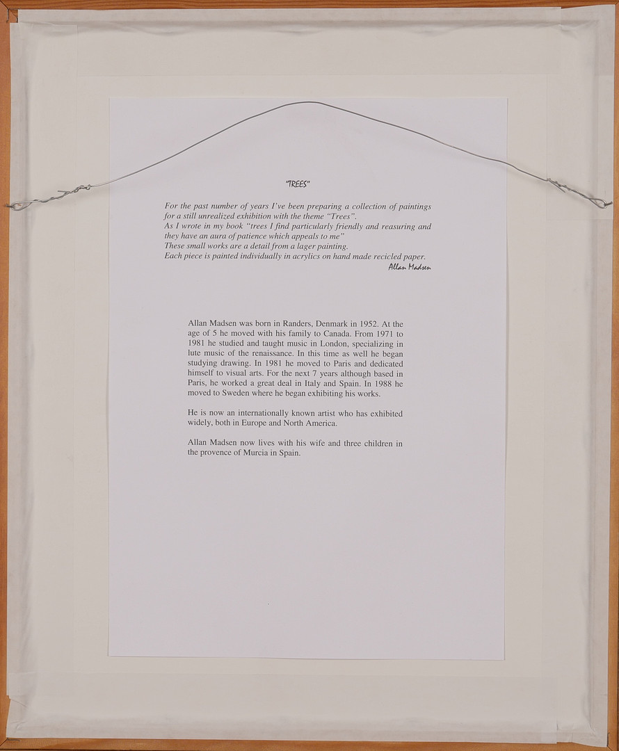 4971999. ALLAN MADSEN. "Trees", olja på papper, monogramsignerad AM.