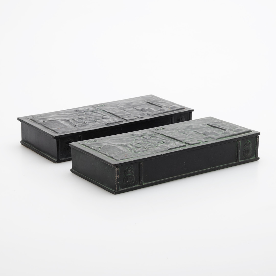 4972312. LOCKASKAR, ett par, brons, 1950-tal.