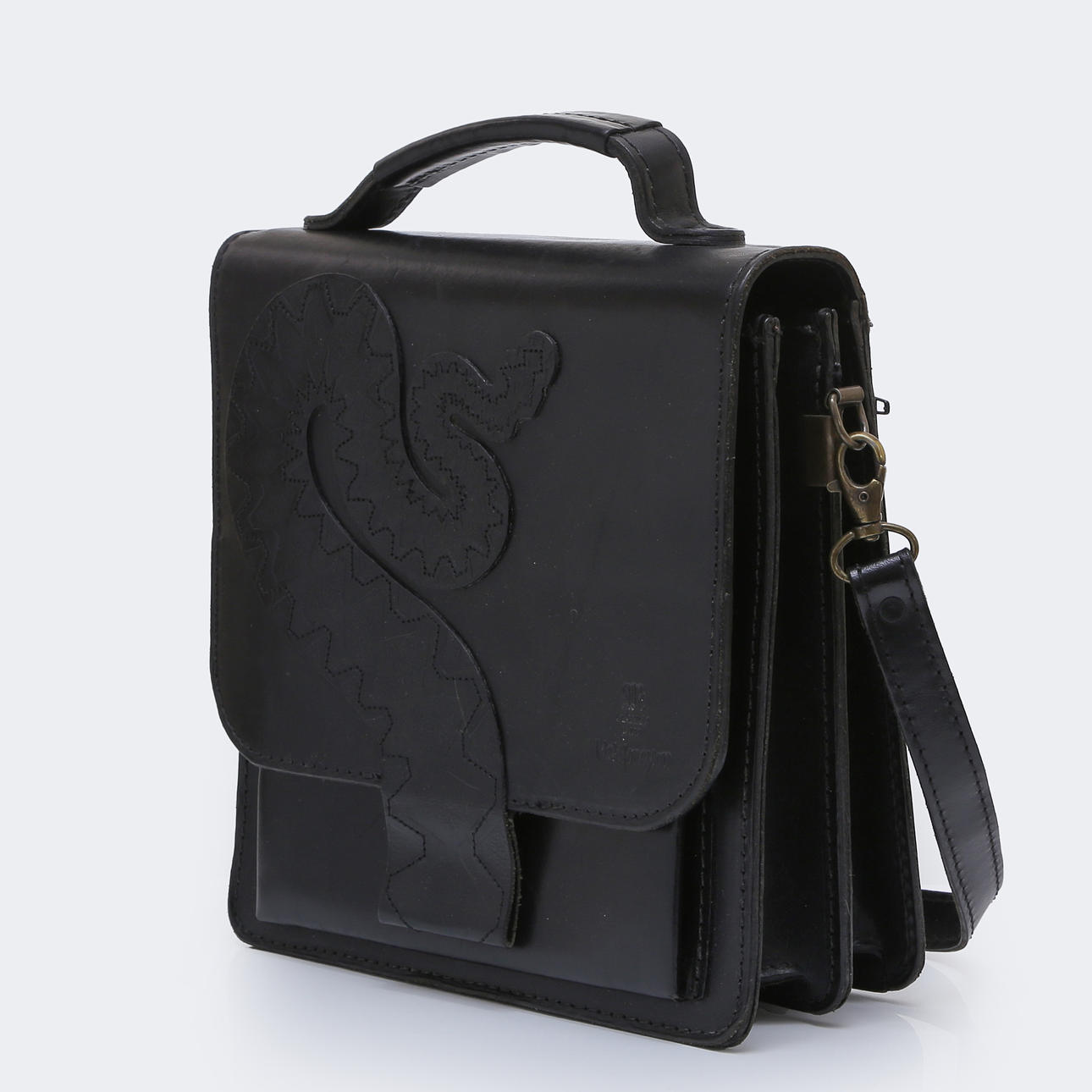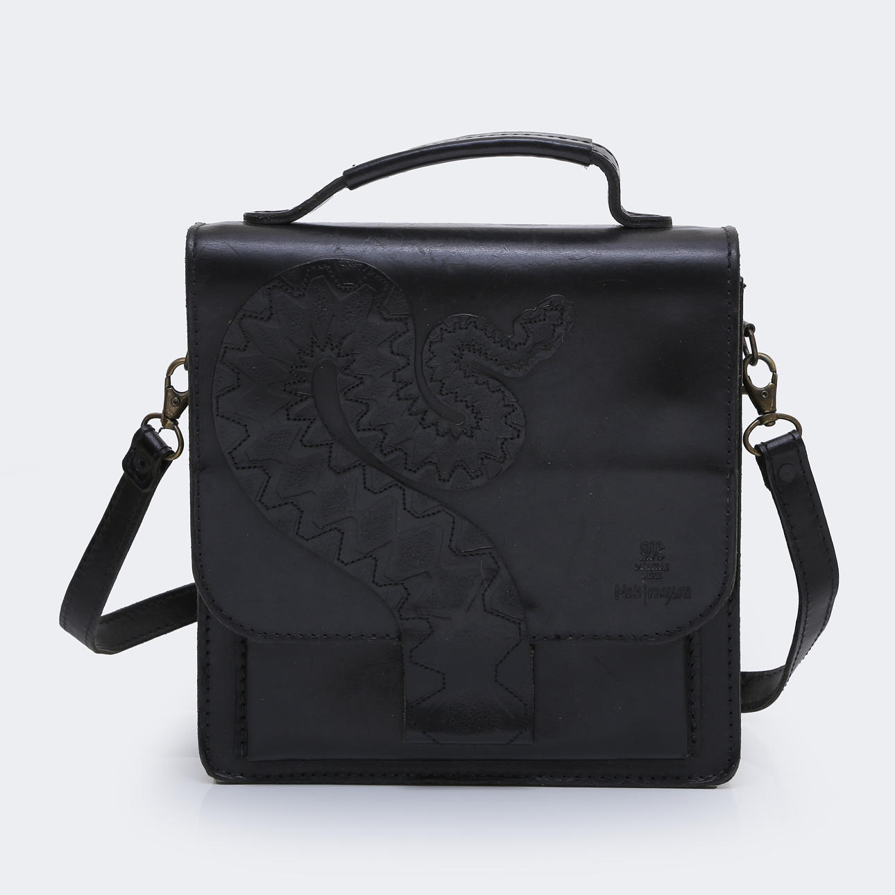 MATS JONASSON. HANDVÄSKA, LÄDER, MÅLERÅS.