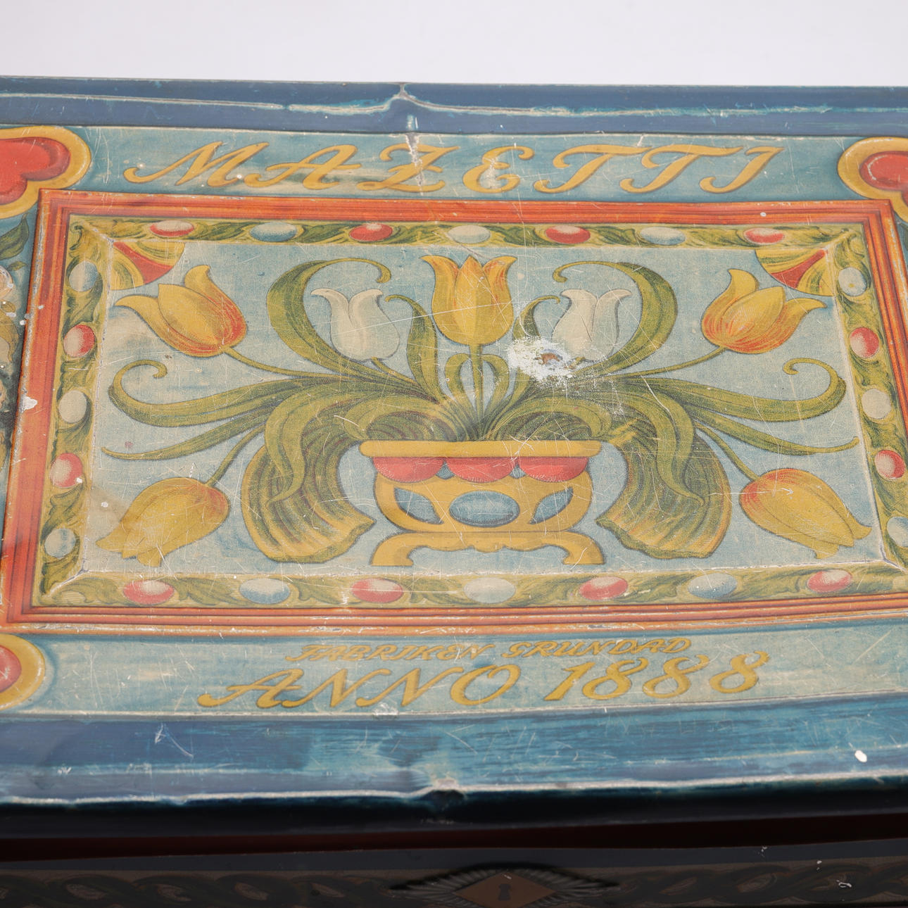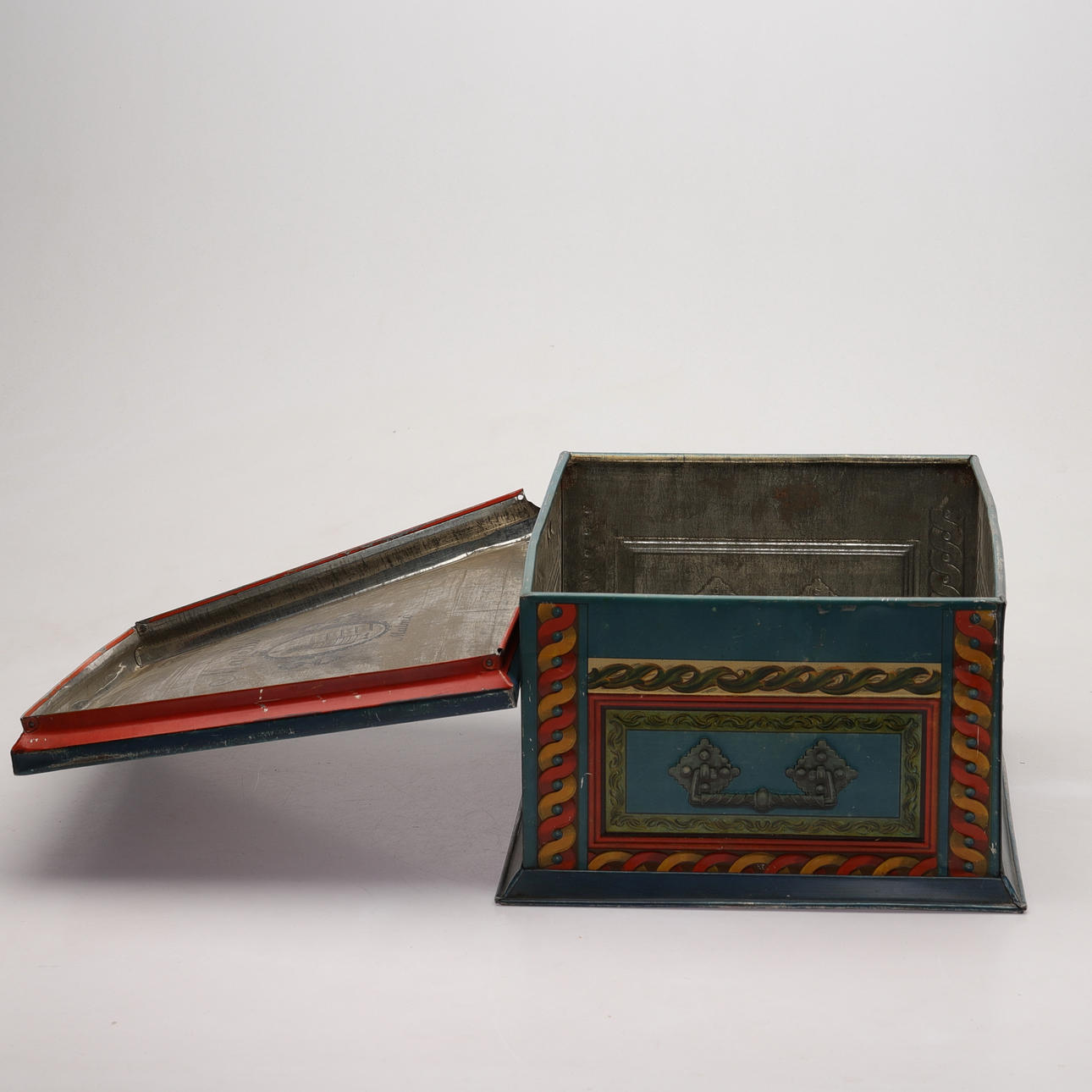 Litograferad plåt. Ca 37x29, höjd 18 cm.
