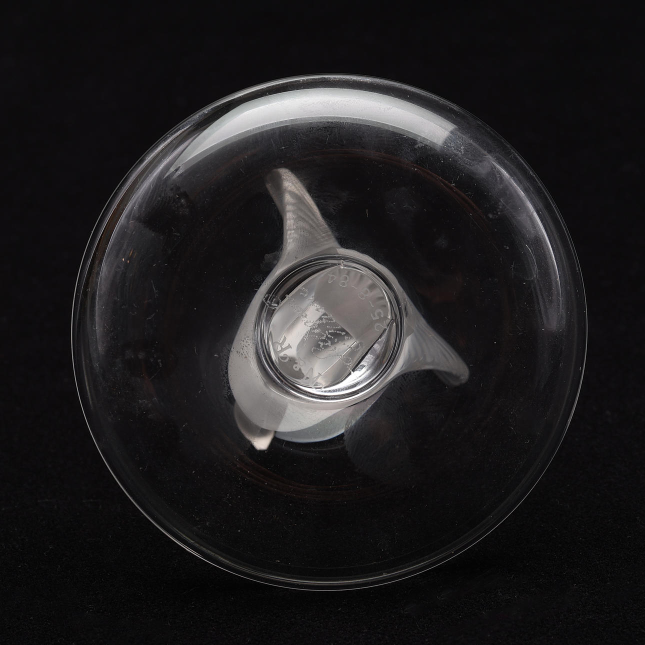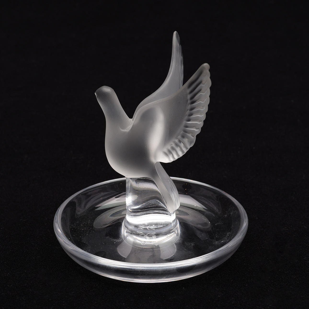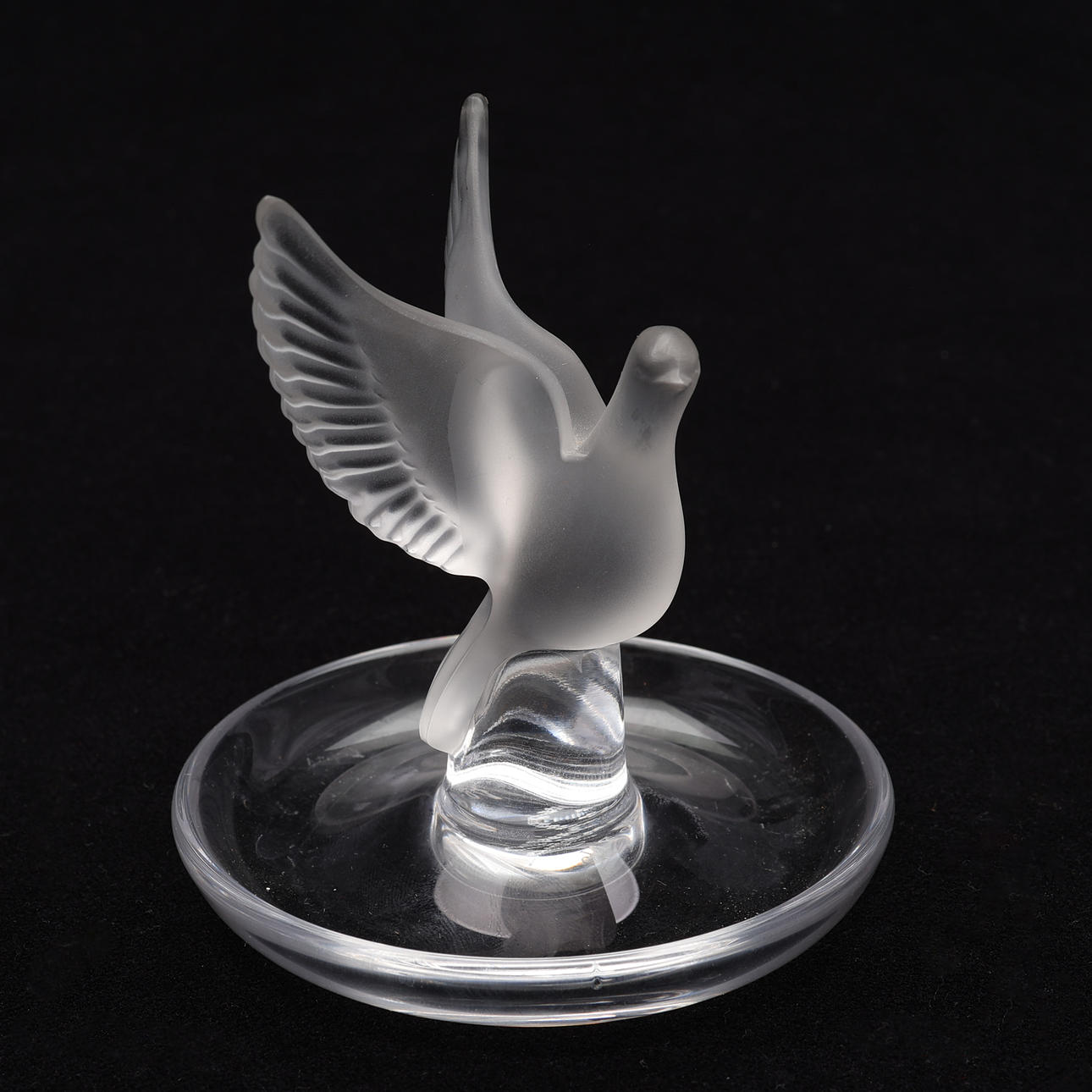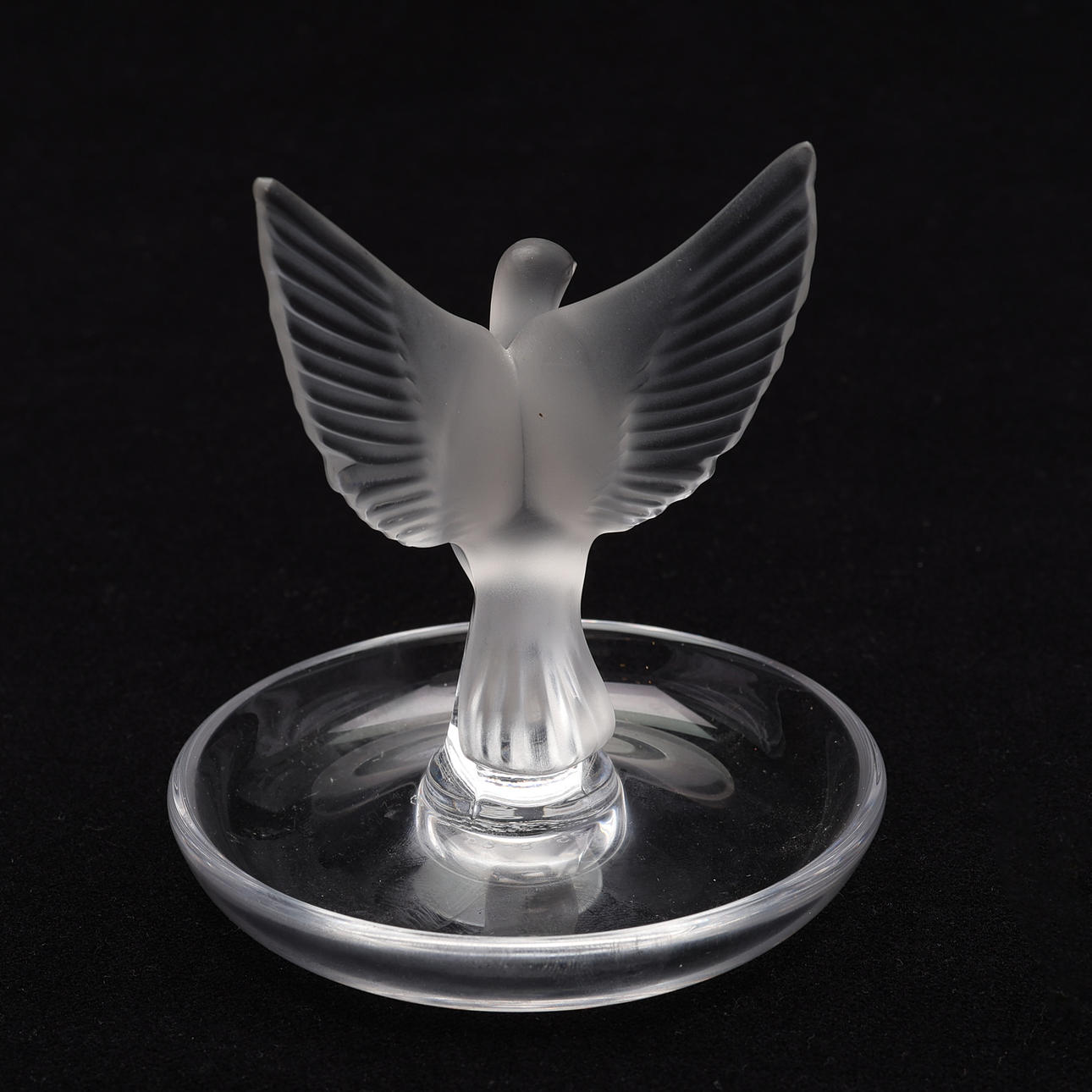 Duva med öppna vingar i frostat glas.