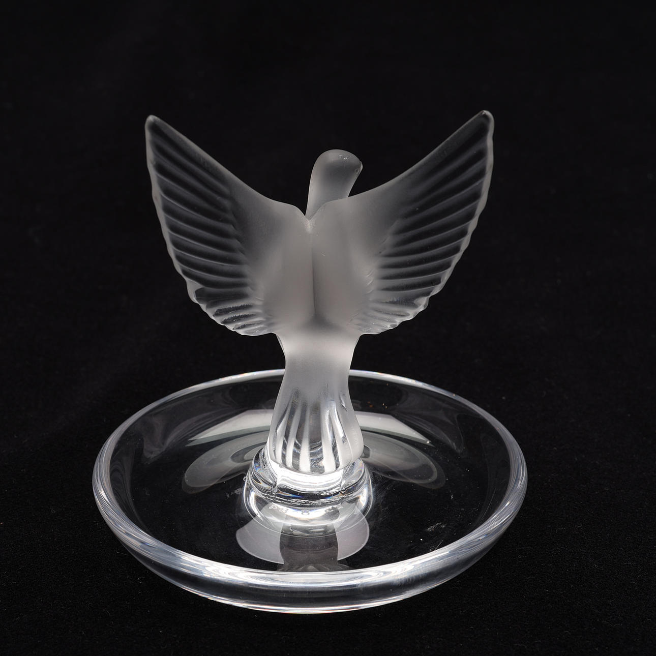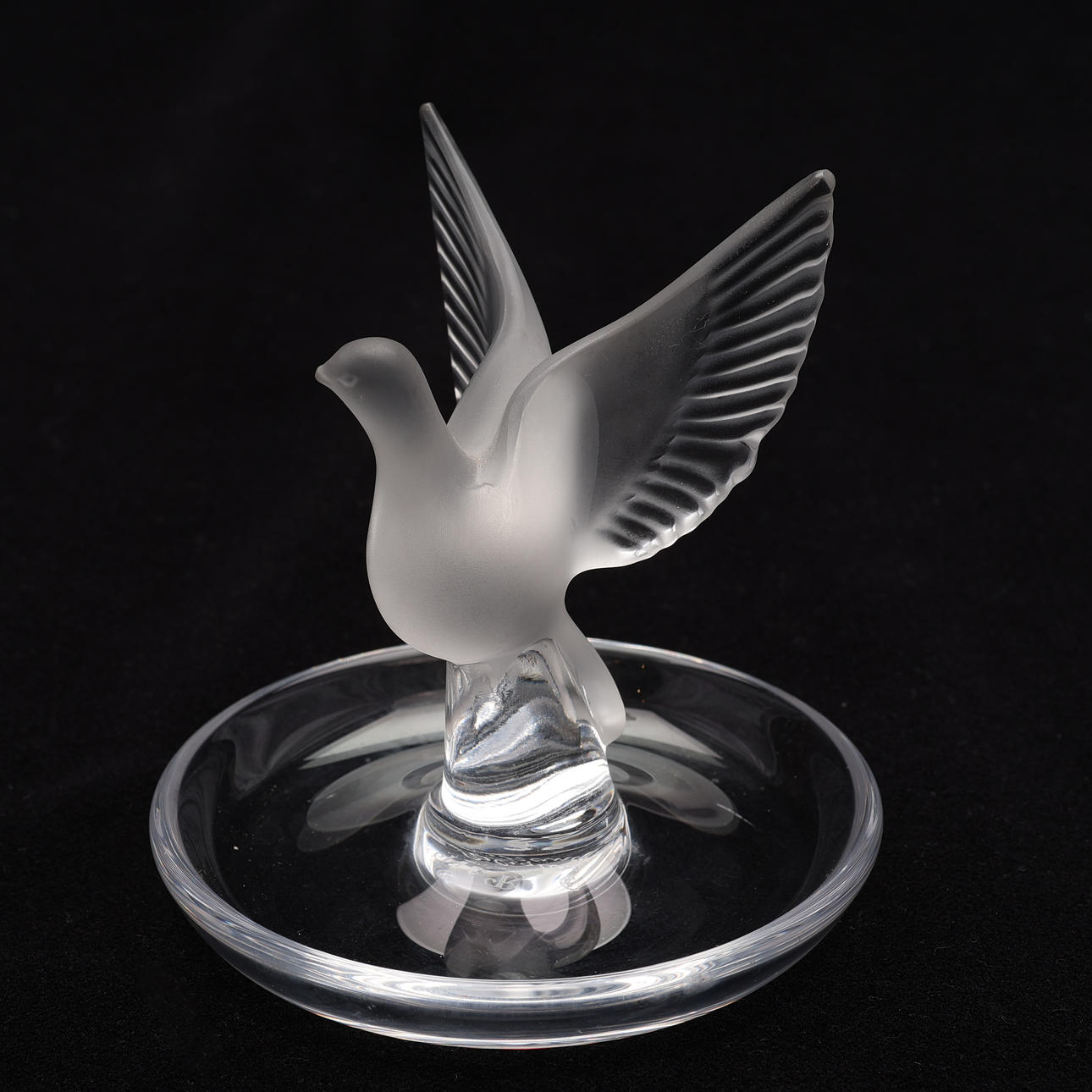 Prydnad i form av duva med öppna vingar i frostat glas.