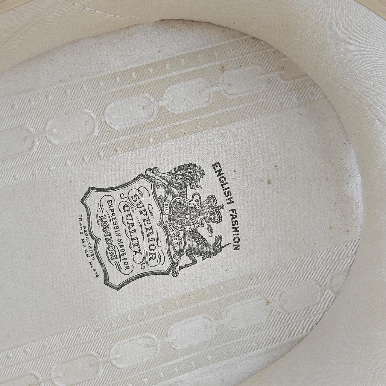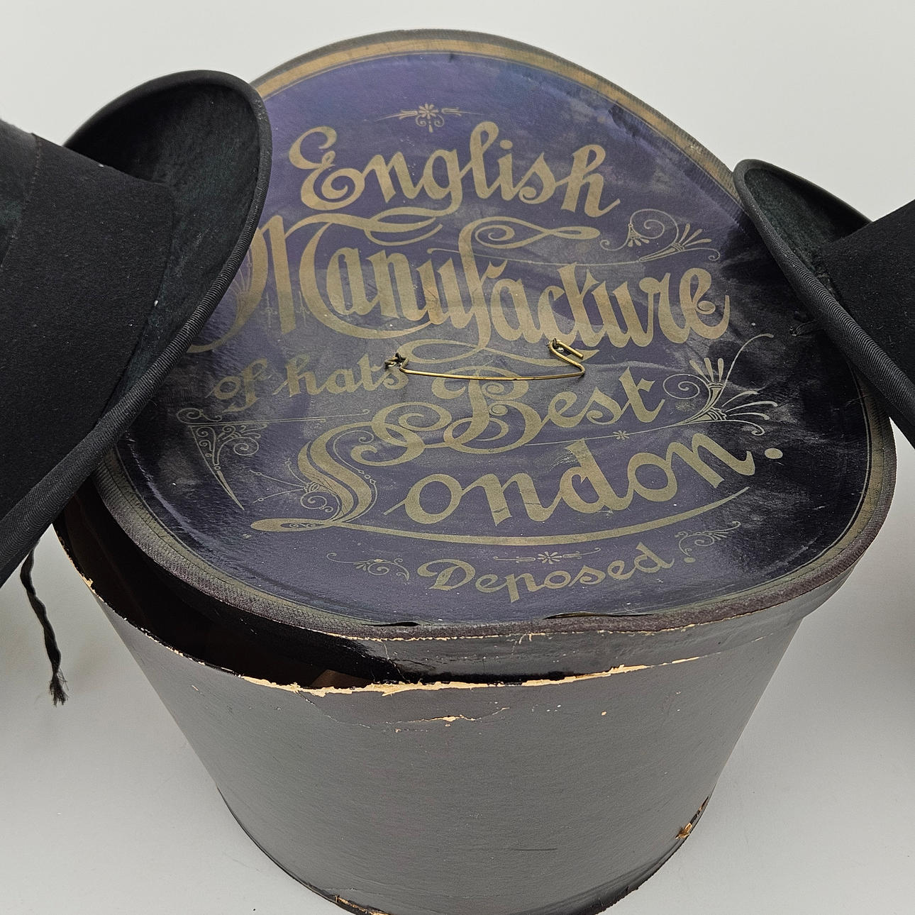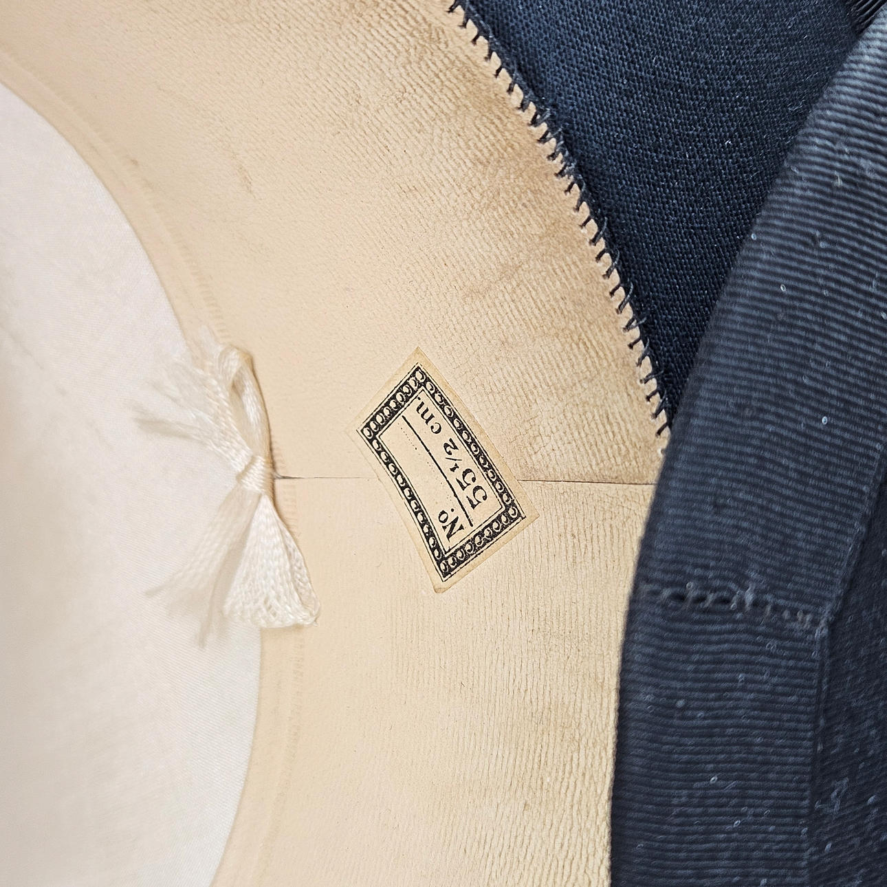 Hatt, England, storlek 55 1/2 cm, med kartong, kartongens storlek ca. 33x28x20 cm. Hatt, innermått ca. 19x15 cm.