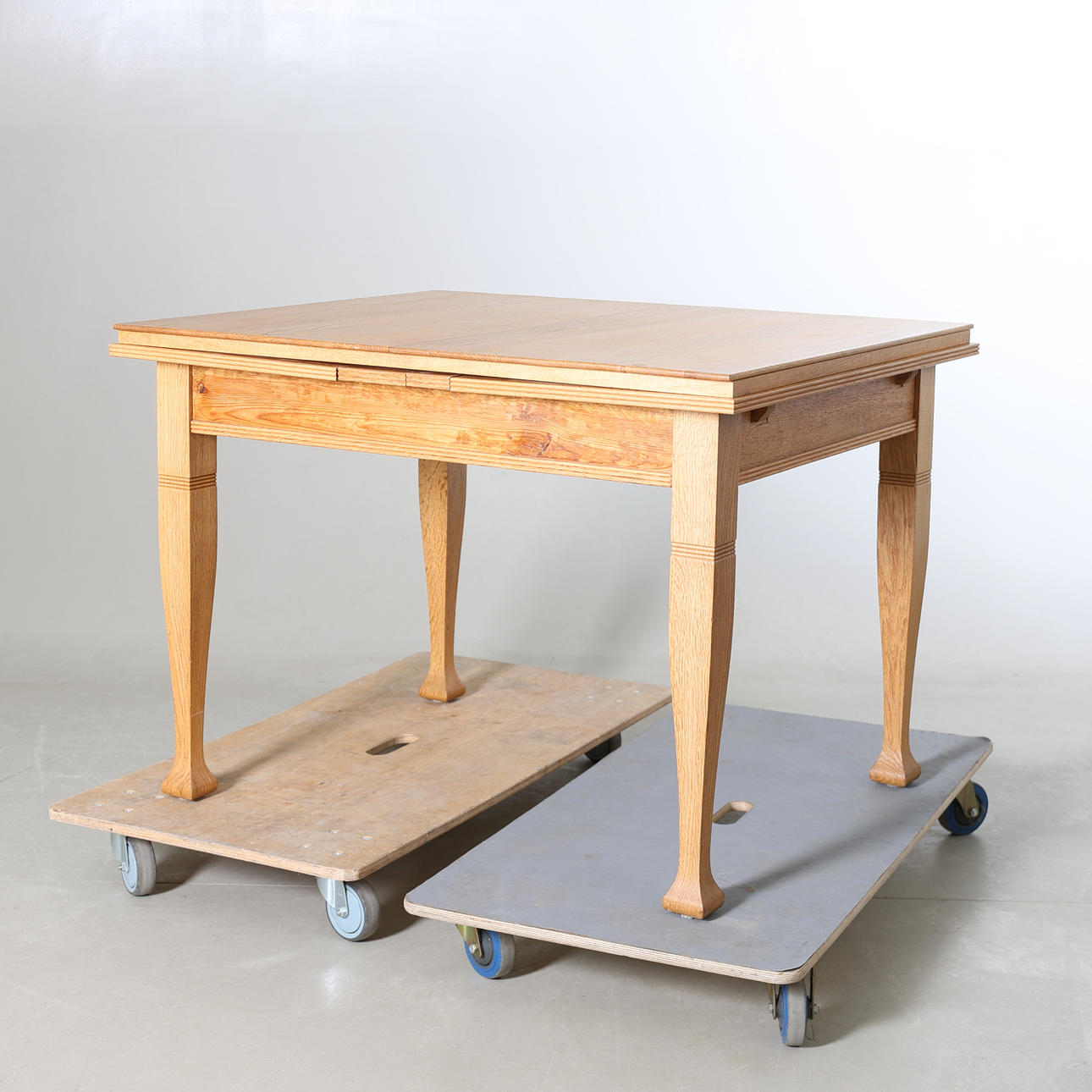 Med utdragbara skivor a 45 cm, höjd ca 79, längd 108, bredd 90 samt a 45 cm.