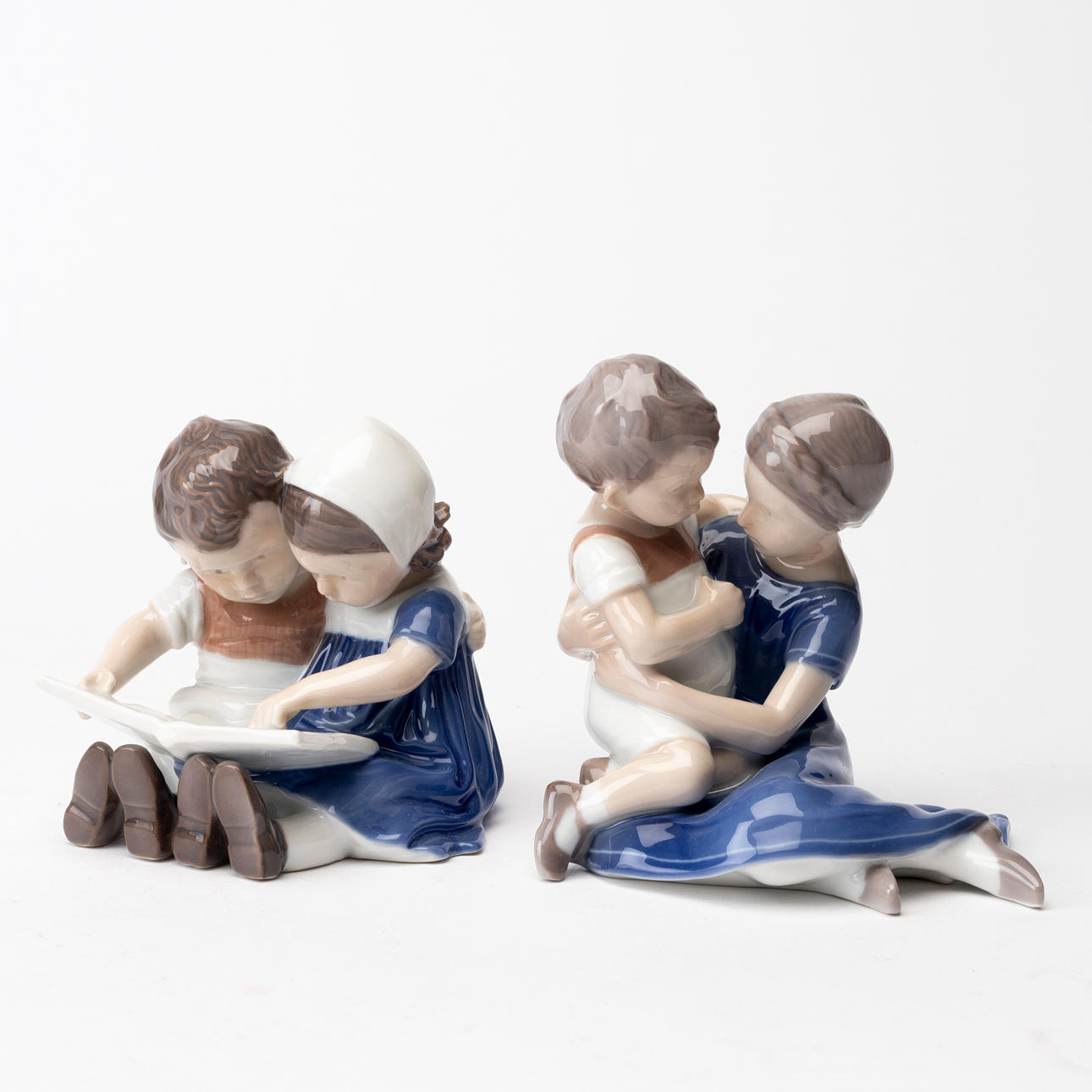 Flicko och pojke läsandes en bok, höjd ca 9,5 cm.