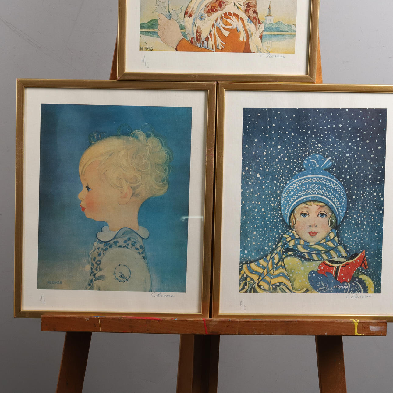 EINAR NERMAN. Rastertryck, 3 st, bläck och Blyertssignerade H.C, Nerman.