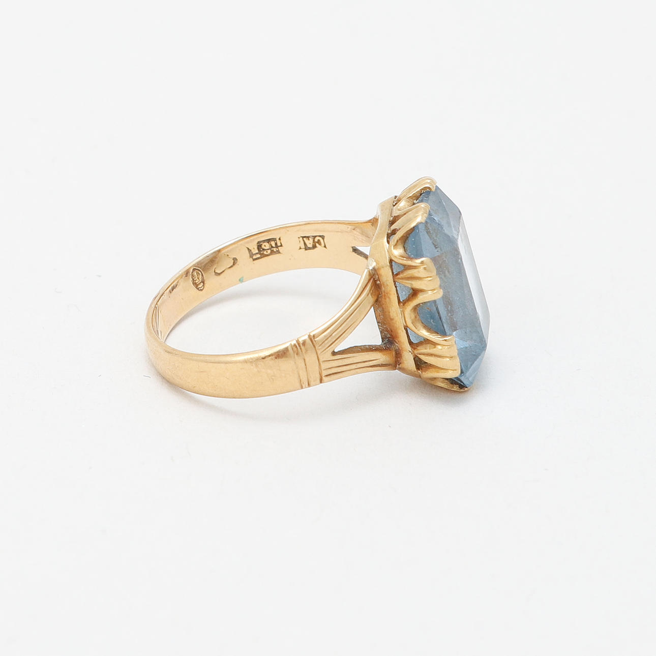 4974552. RING, 18k guld med blå sten, vikt ca 5,6 gram.