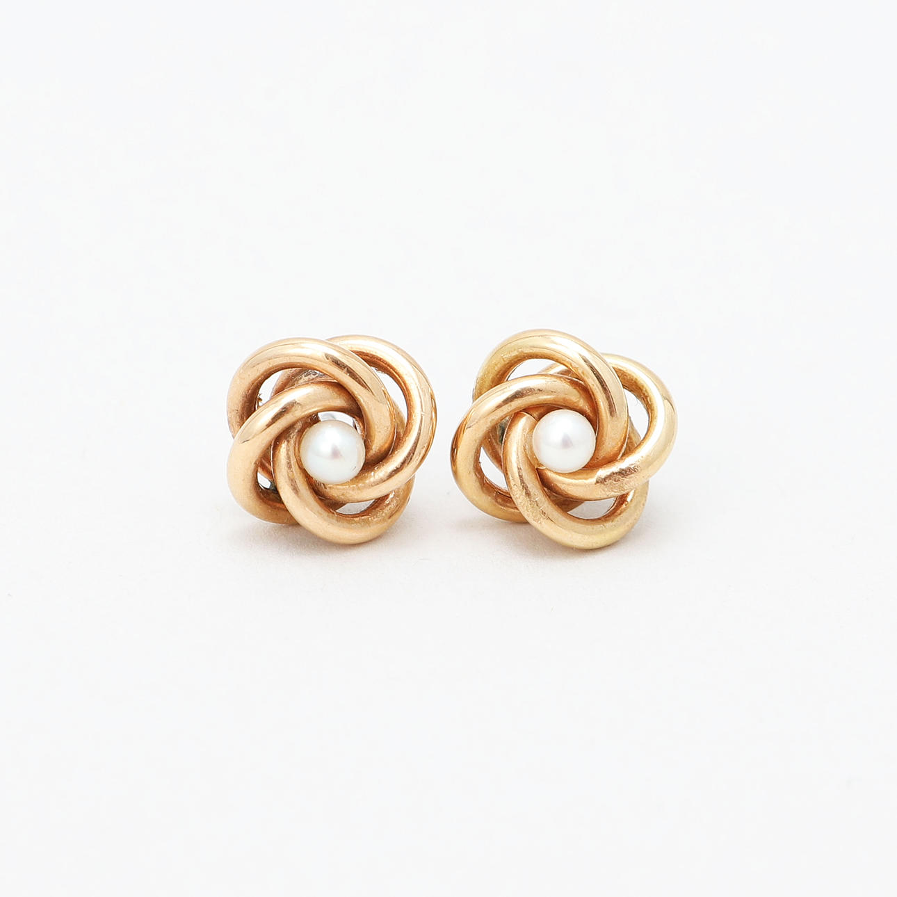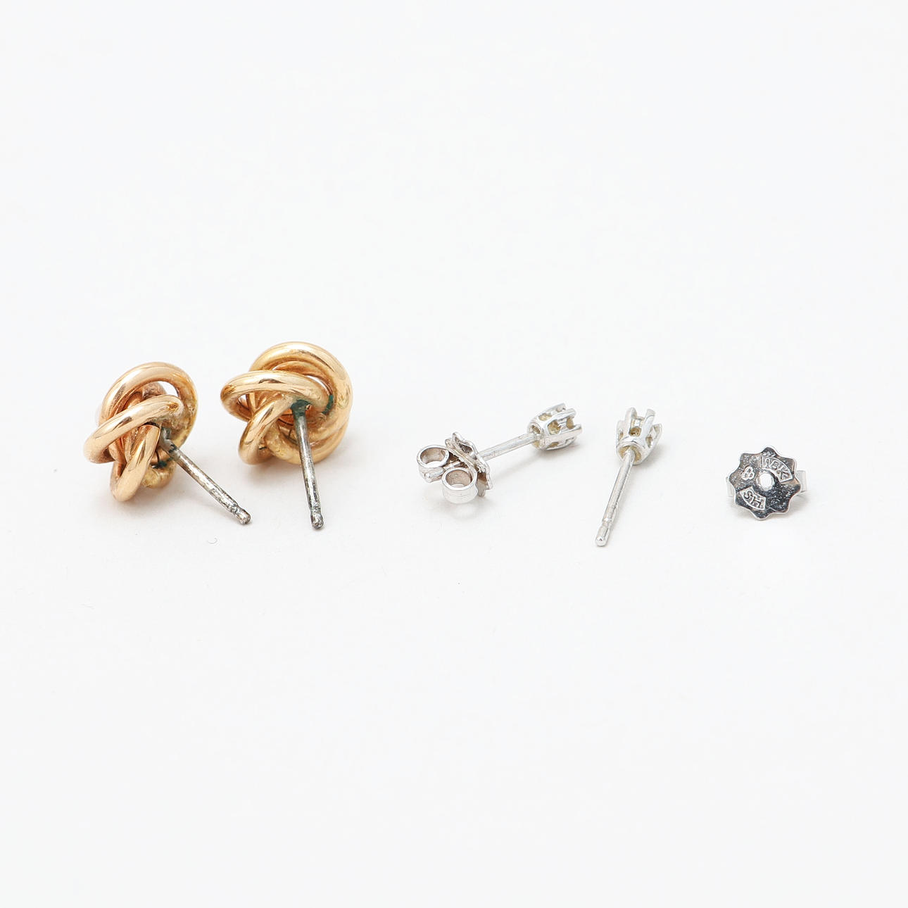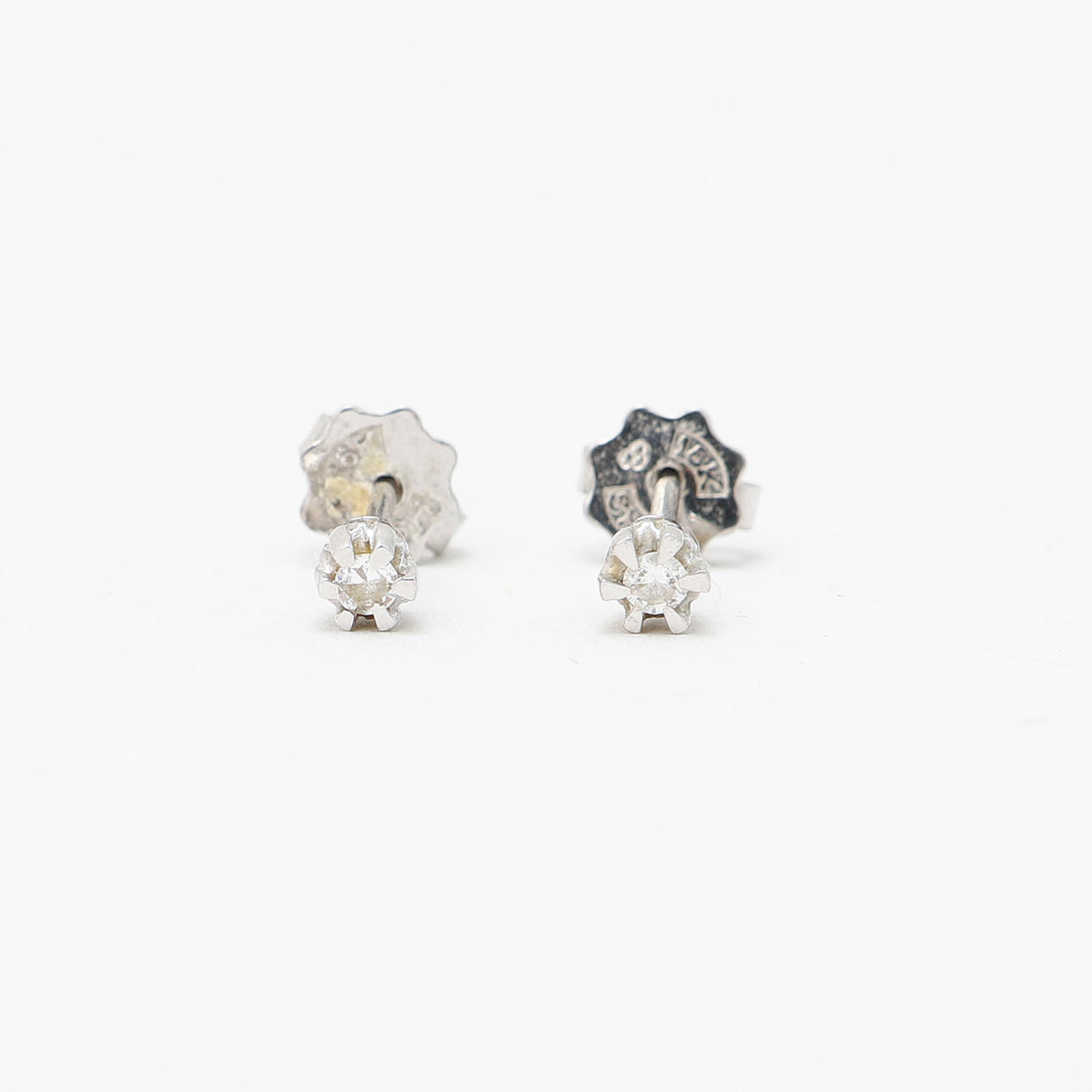 1 par i vitguld med små diamanter, 1 par med pärla.