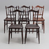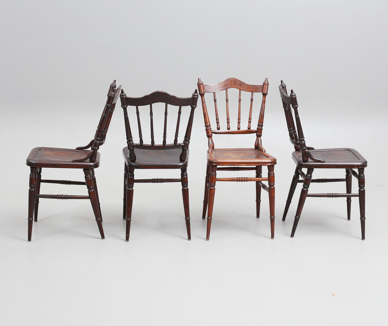 Brukssliotage, fläckar, märken. 4 av stolarna senare lackade/betsade.