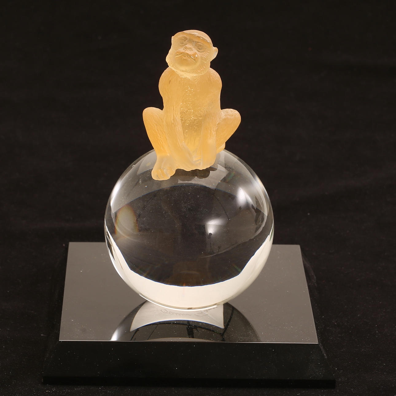 Figurin Daum, apa, glas, total höjd ca 20 cm.