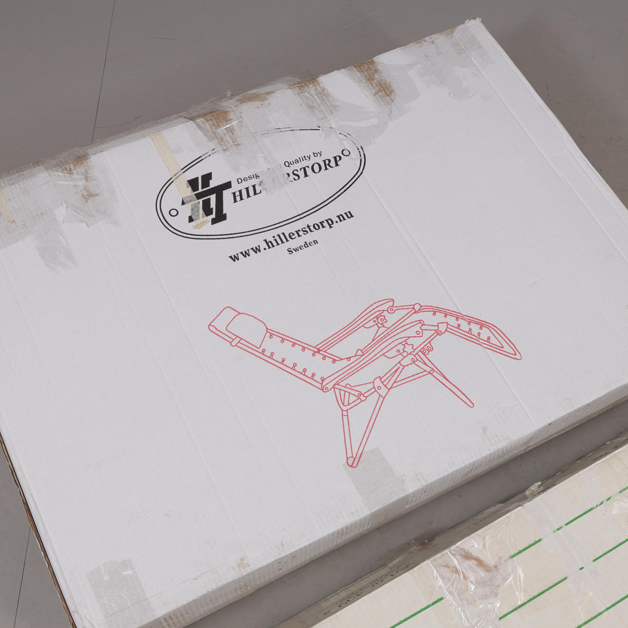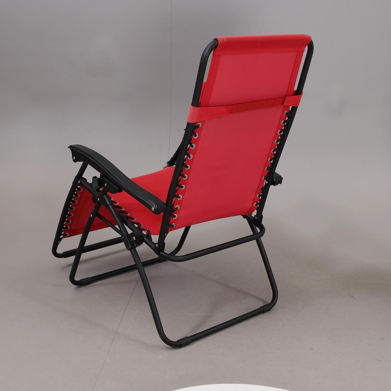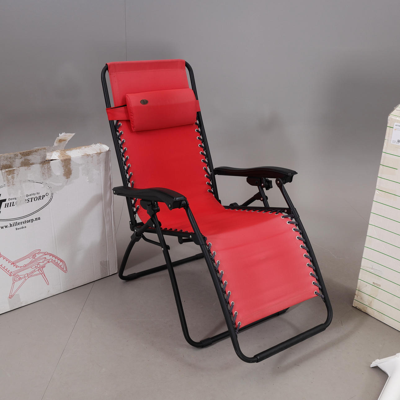 Solstol, plast, "Baden-Baden steglös", svart/röd, mått kartong 67 x 16 x 96 cm
