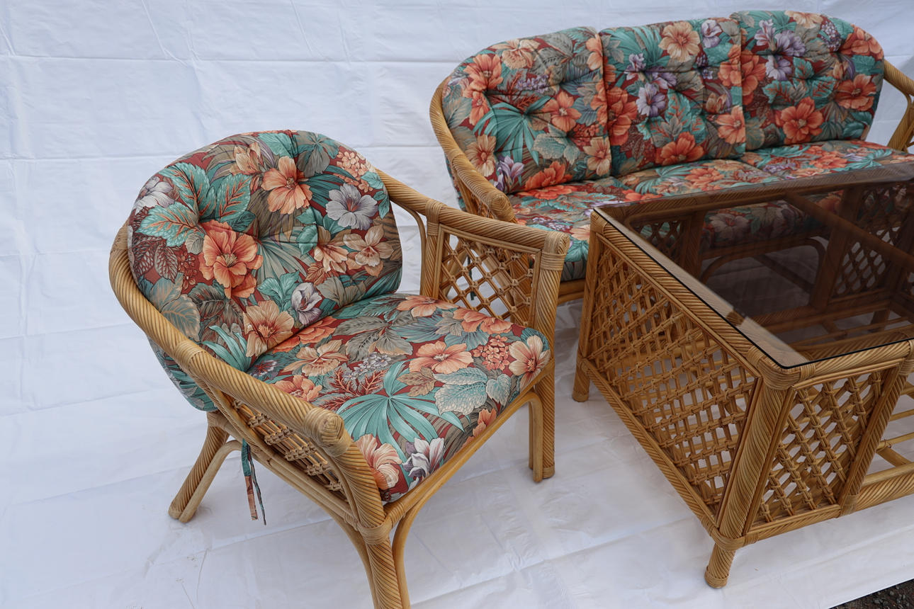 Rotting. Med textila löstagbara dynor. Bordet med löstagbar skiva av glas.