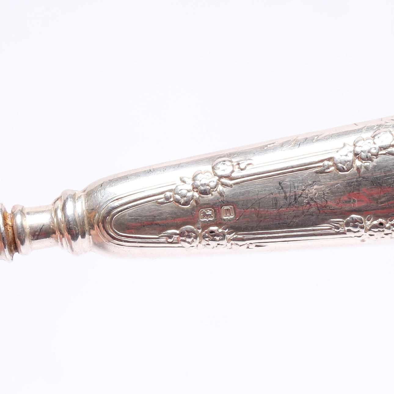 Slitage. Mindre glipa mellan silver och stål.
