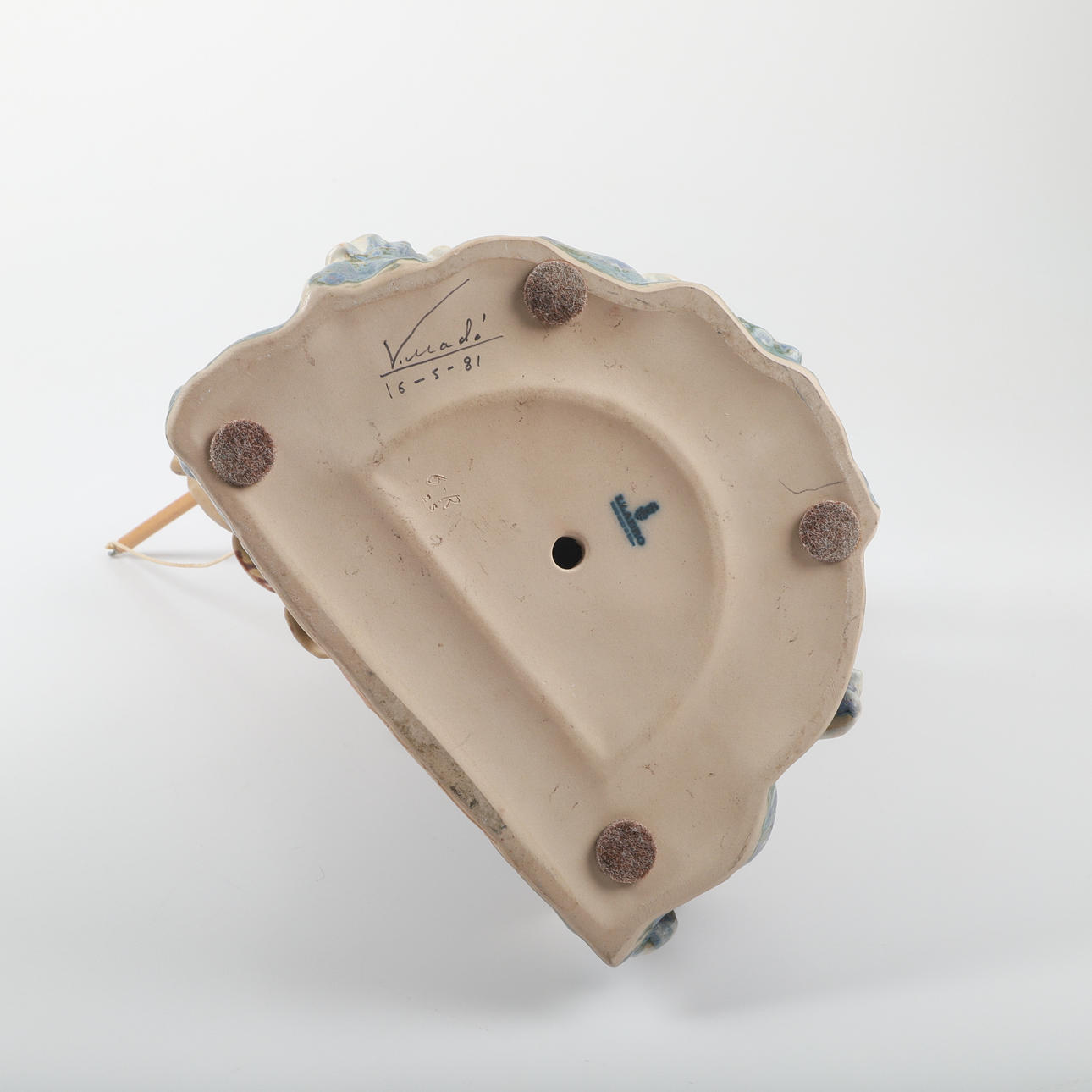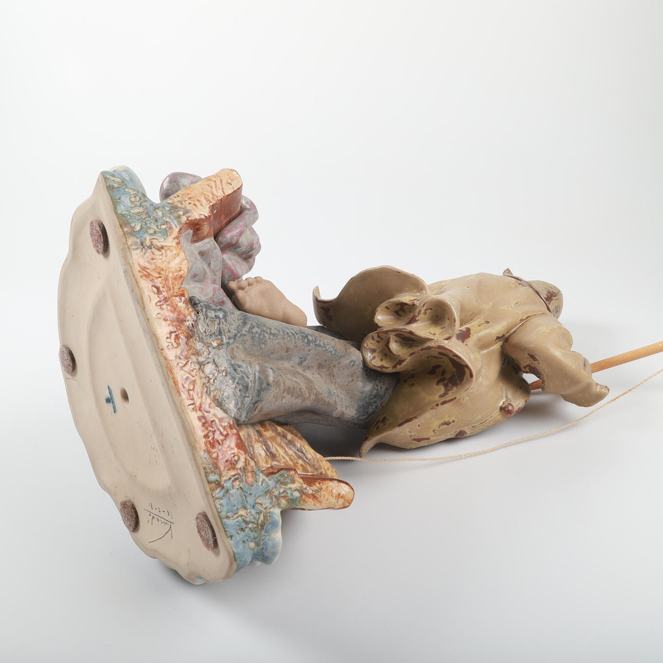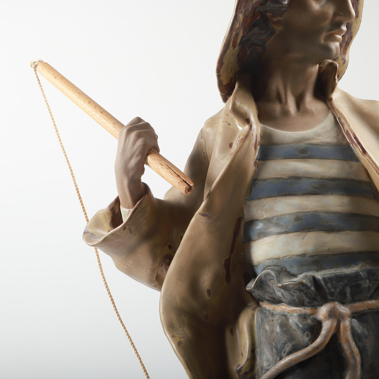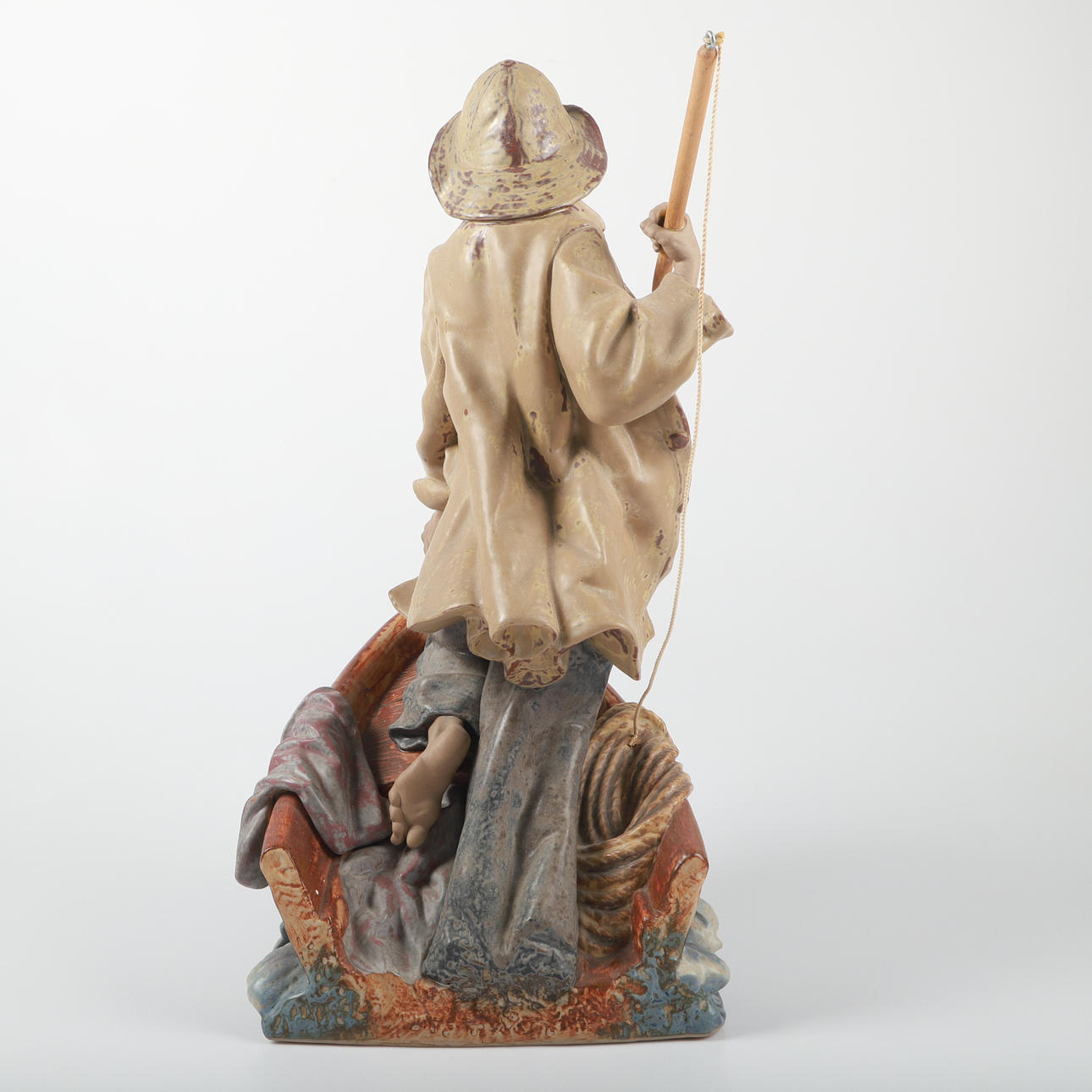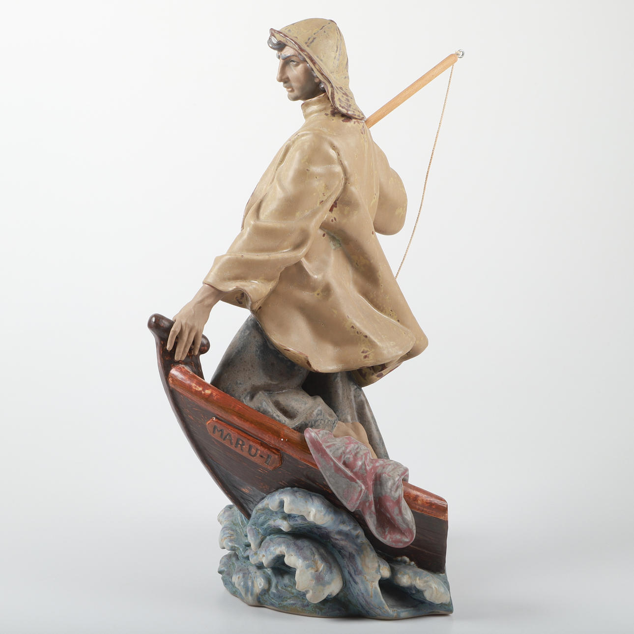 Harpunen saknas och skaftet skadat, smärre färgstänk, bruksslitage.
