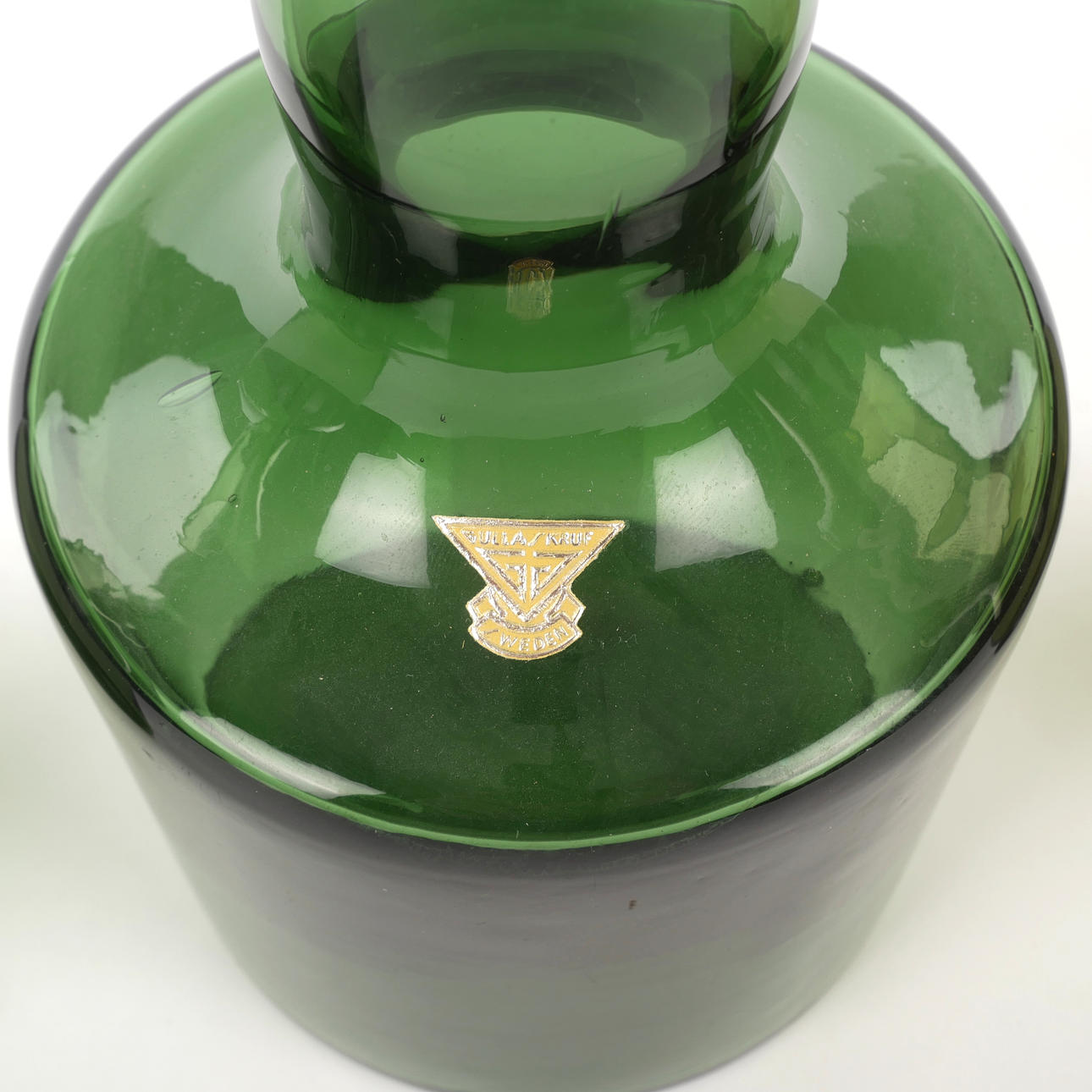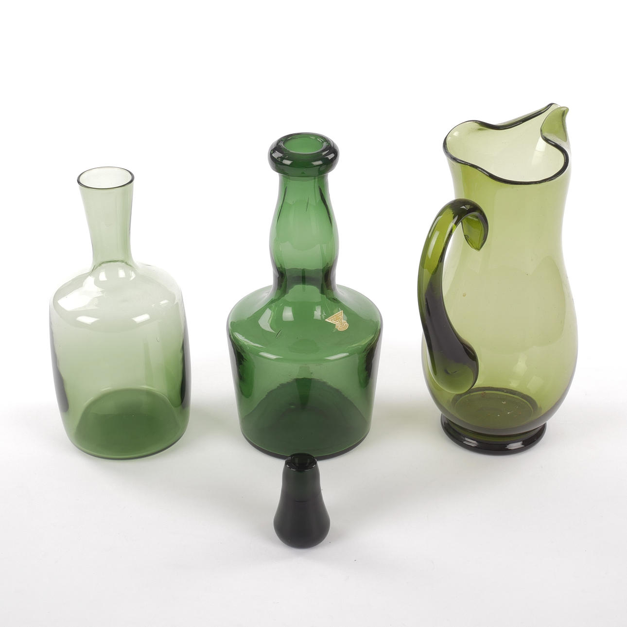 4977378. KARAFFER/KANNOR, 3 st, grönt/mossgrönt glas, Gullaskruf.