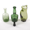 KARAFFER/KANNOR, 3 st, grönt/mossgrönt glas, Gullaskruf.
