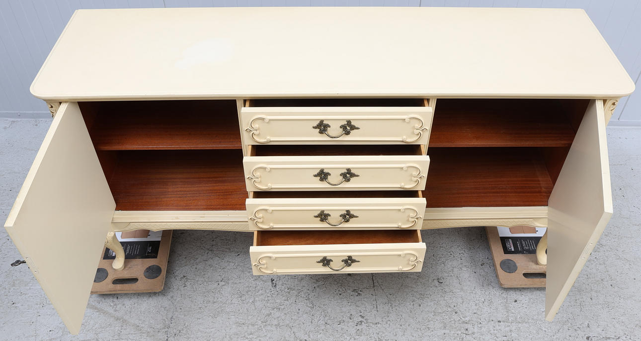 Målat i benvitt. Bredd ca 170 cm. Djup ca 48 cm. Höjd ca 82 cm.