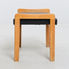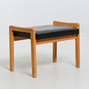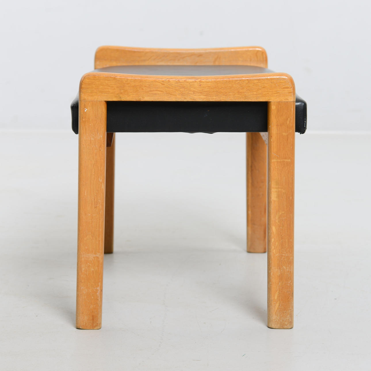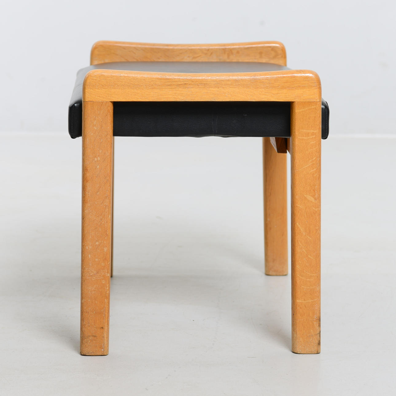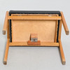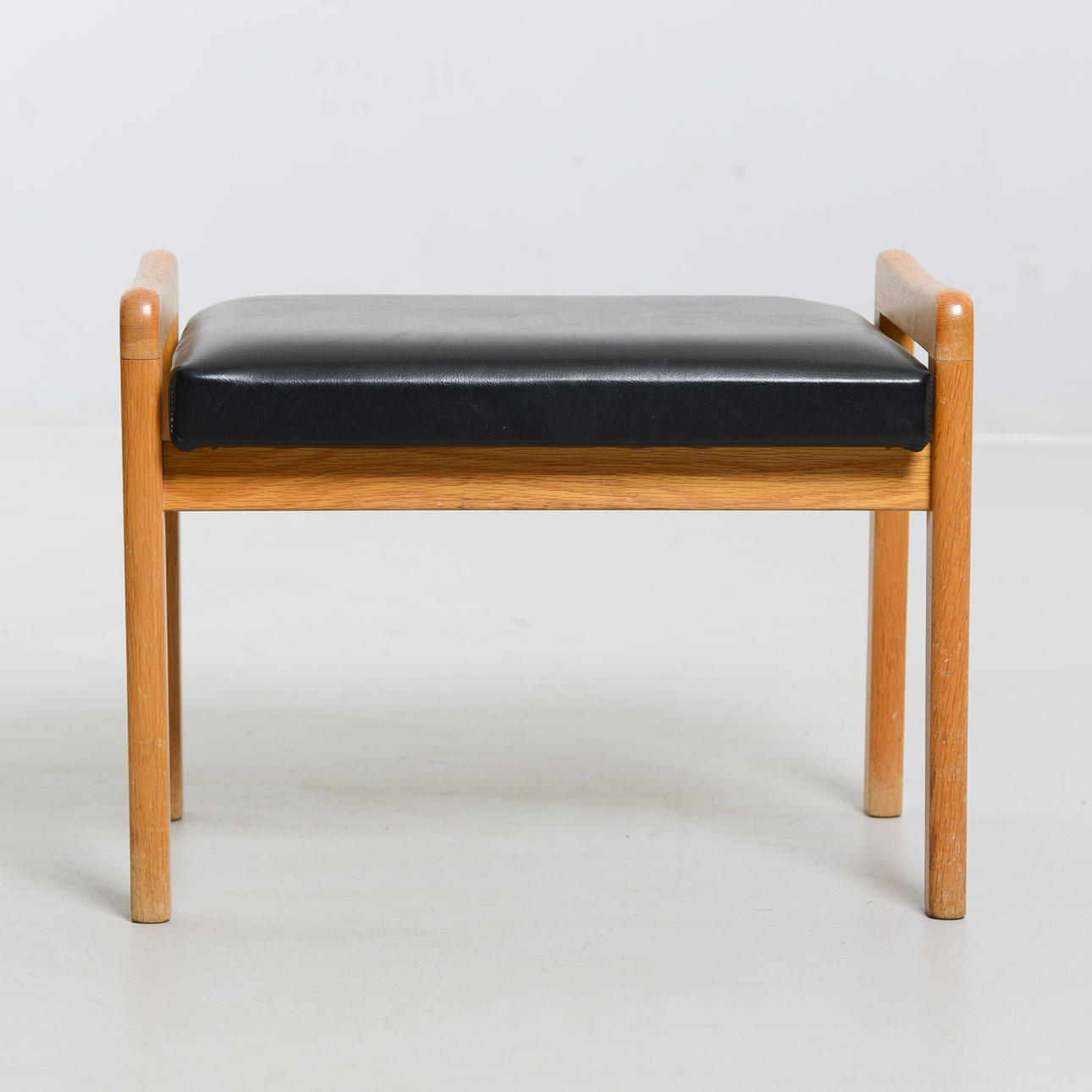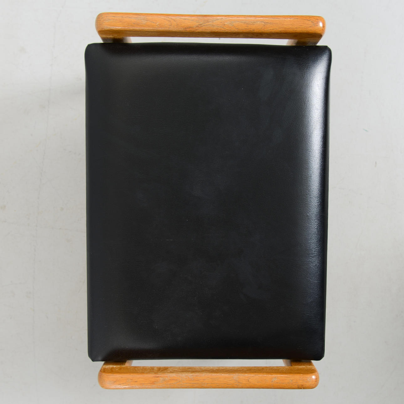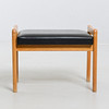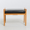 Teak och konstskinn. Längd 54 cm. Bredd 36 cm. Höjd 40 cm.
