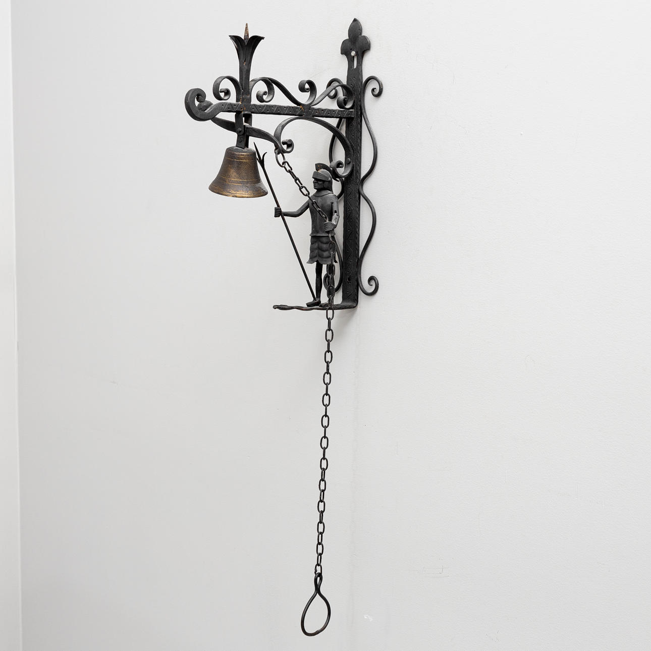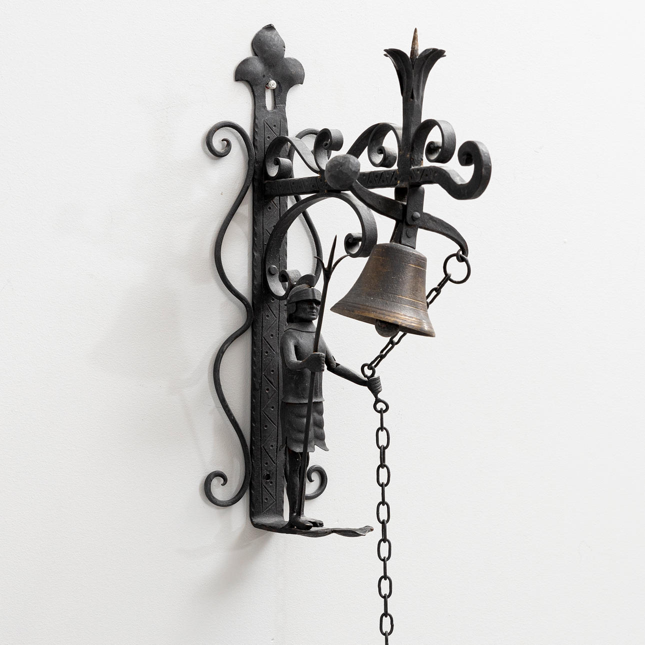 DÖRRKLOCKA, smide, med dekor av soldat, 1900-tal.