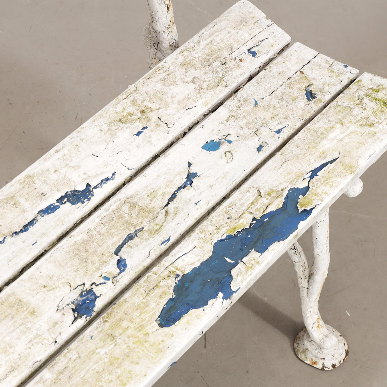 Slitage, senare bemålad, färgbortfall, krackelyr i färg.