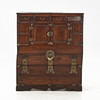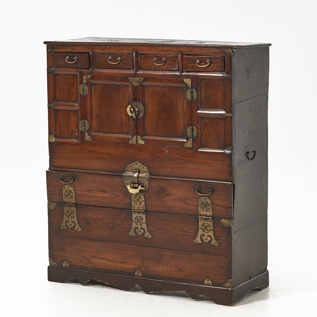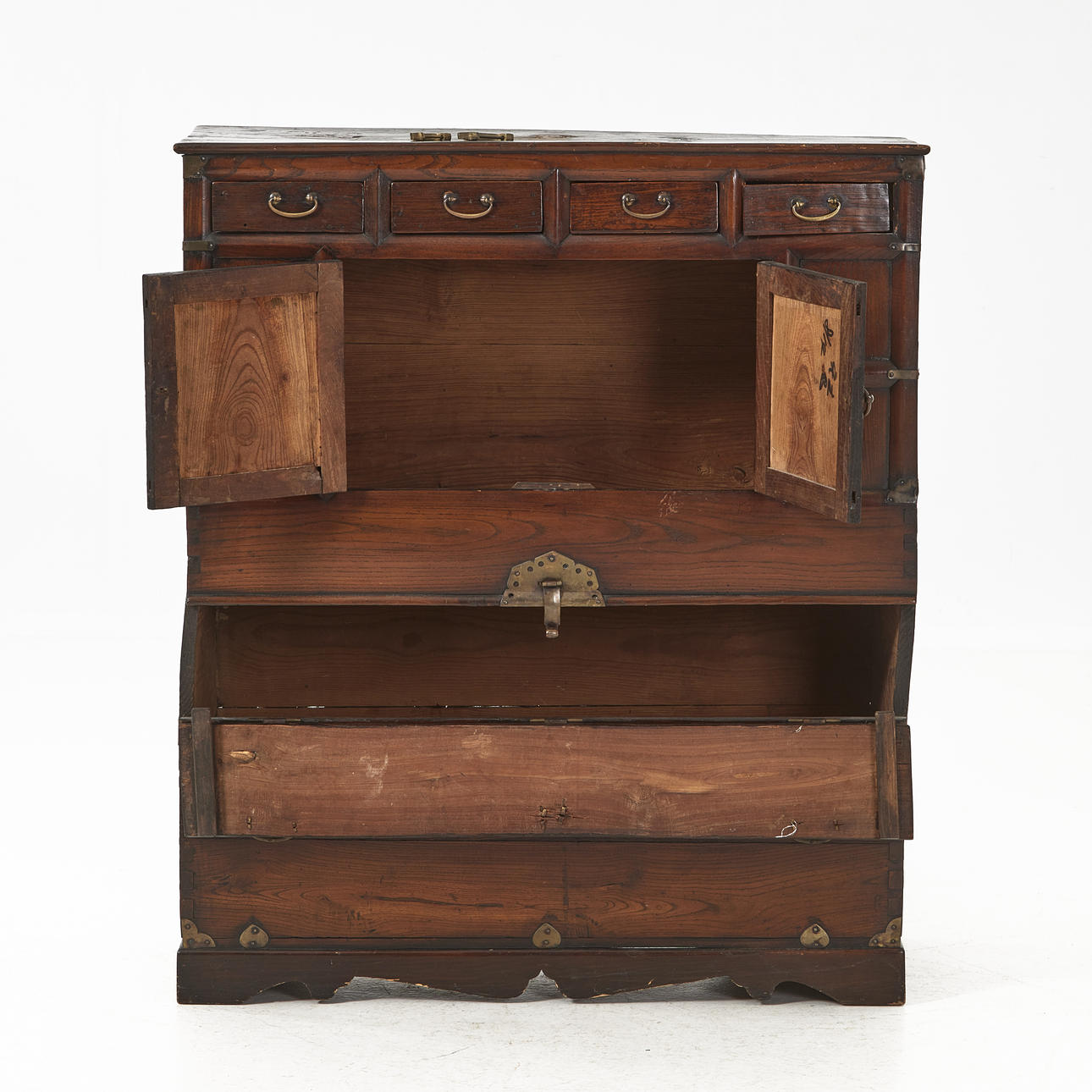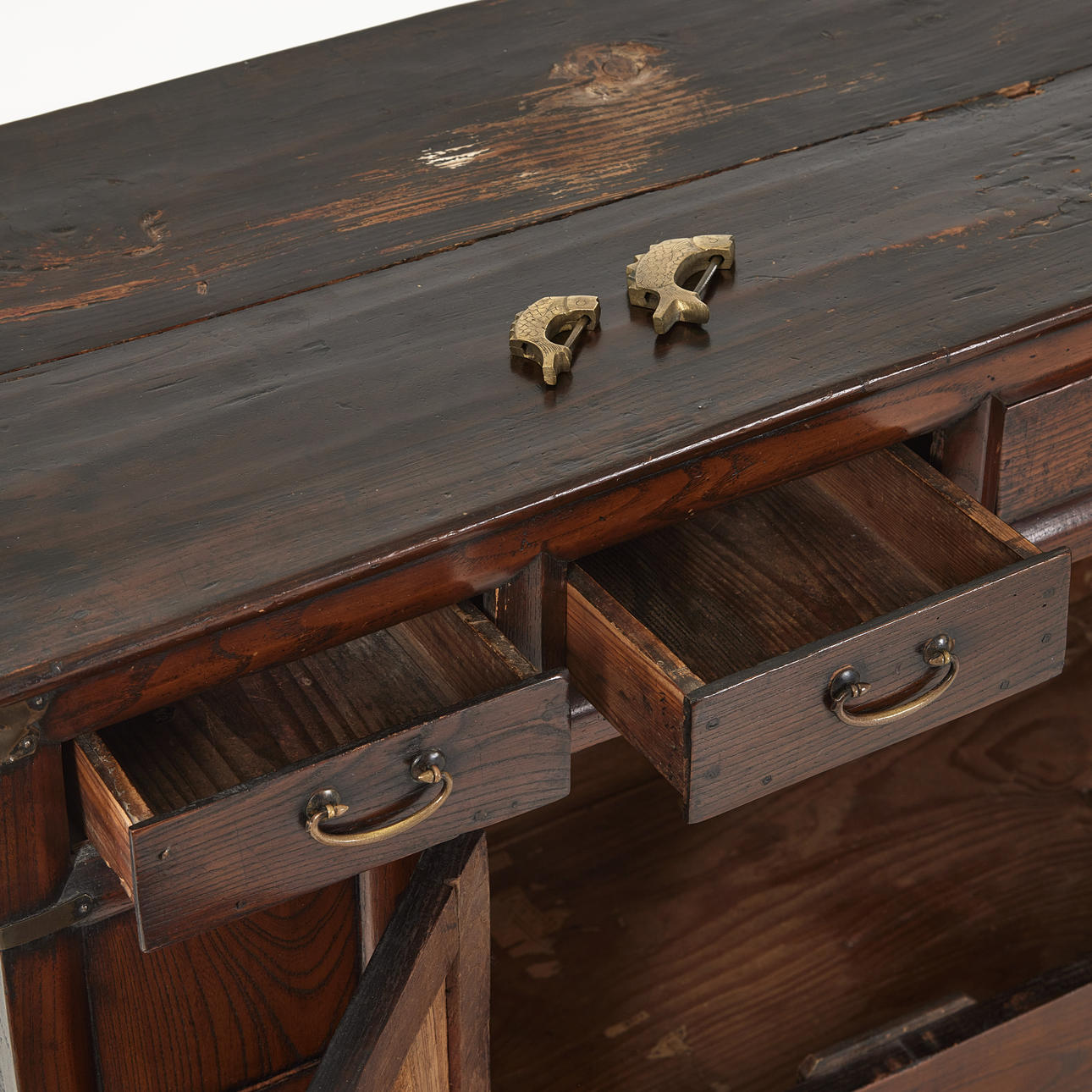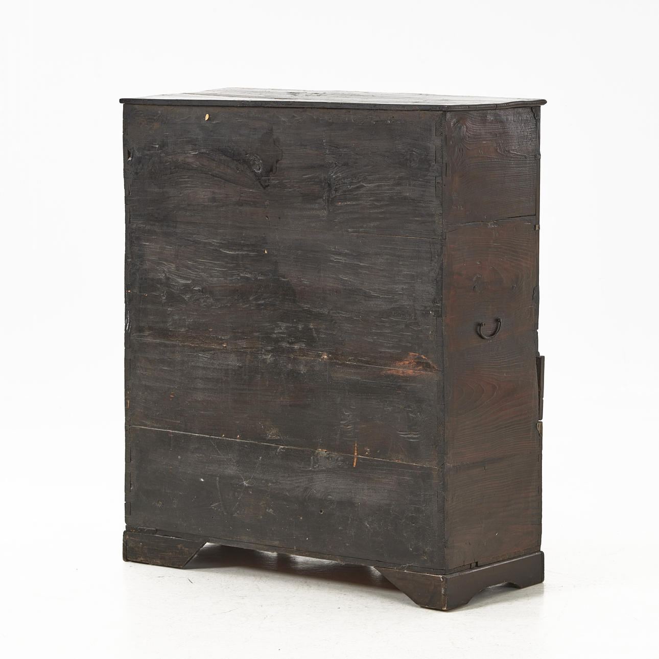 Lådor och skåpsdelar, mörkbetsad, mått ca 104,89 x 37 cm.