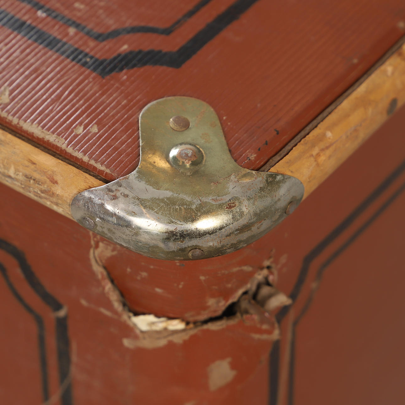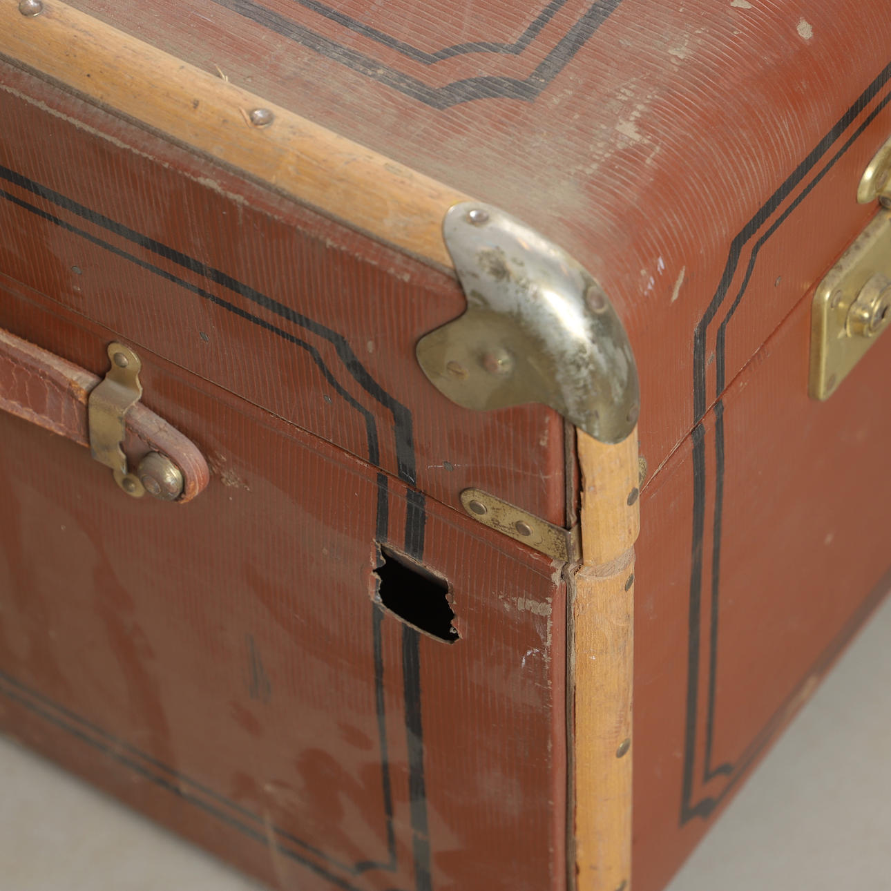 Bruks- och åldersrelaterat slitage. Utsågade hål, skador.