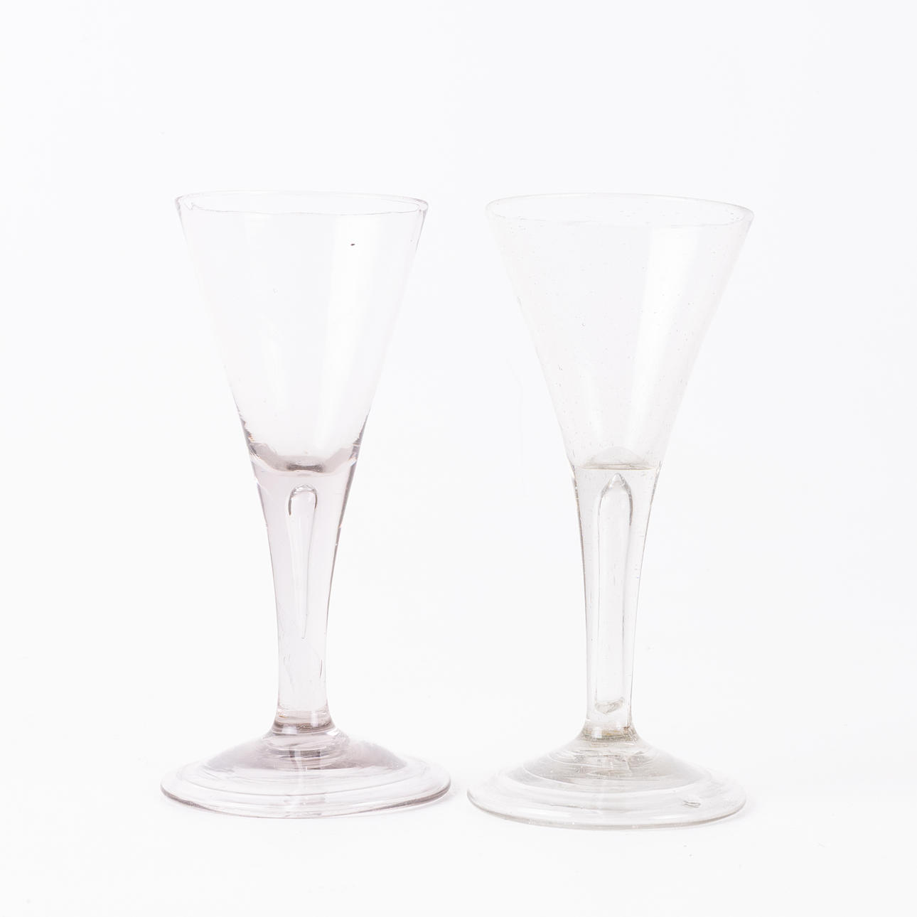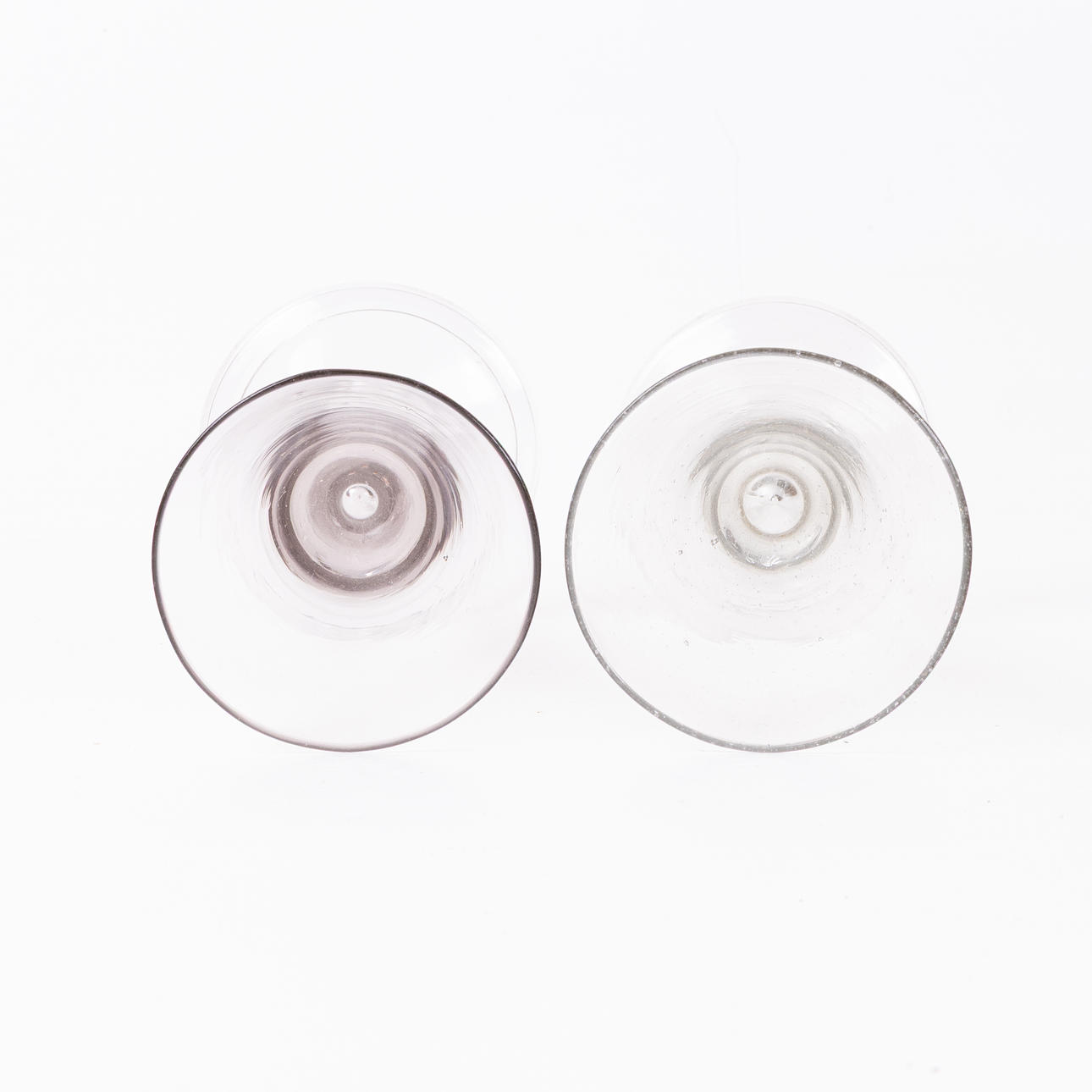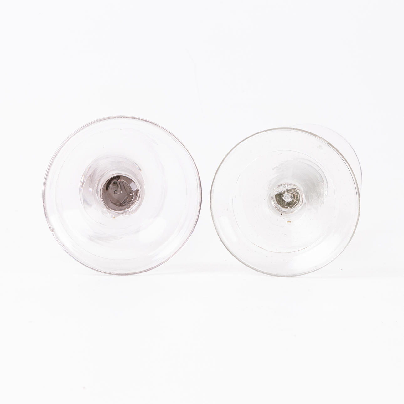 Snapsglas, 2 st. Med omvikt fot. Sverige, 1700-tal.