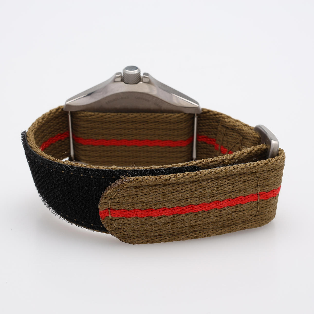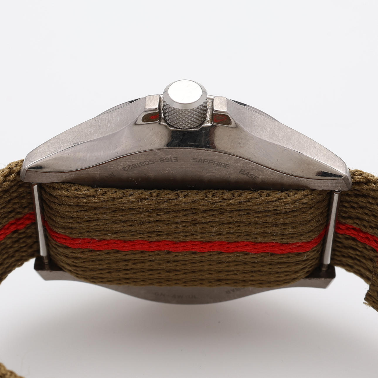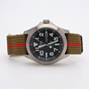 Titan, soldrivet kvartsverk, safirglas, textilt armband, medföljer Citizen stållänk med viklås i oöppnad påse, boettdiameter 39 mm. Medföljer box.