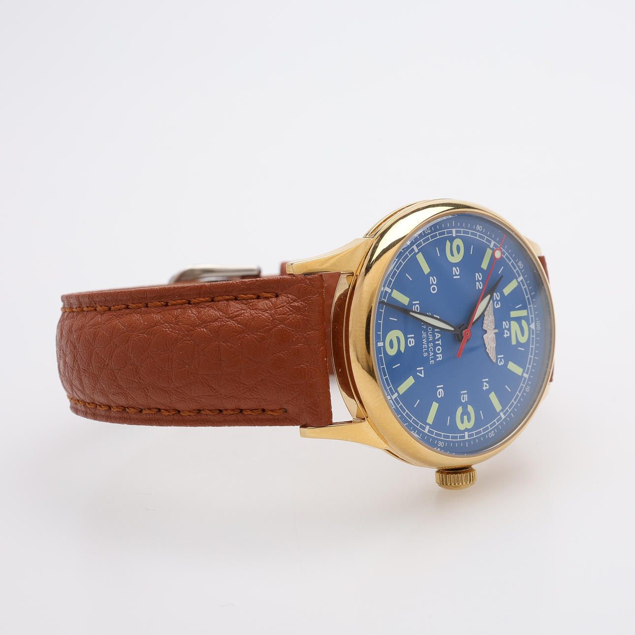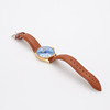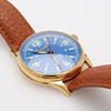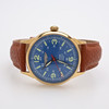 Förgyllt stål, automatiskt uppdrag, mineralglas, läderarmband, boettdiameter 38 mm. Box medföljer.