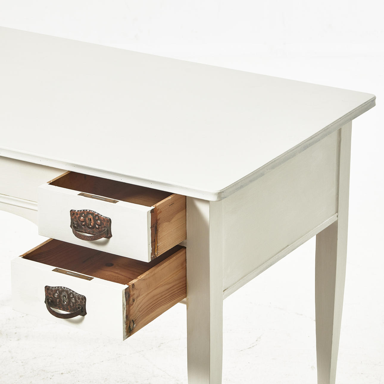Vitmålat med mässingsbeslag, höjd 77, 116x63 cm.
