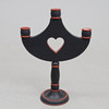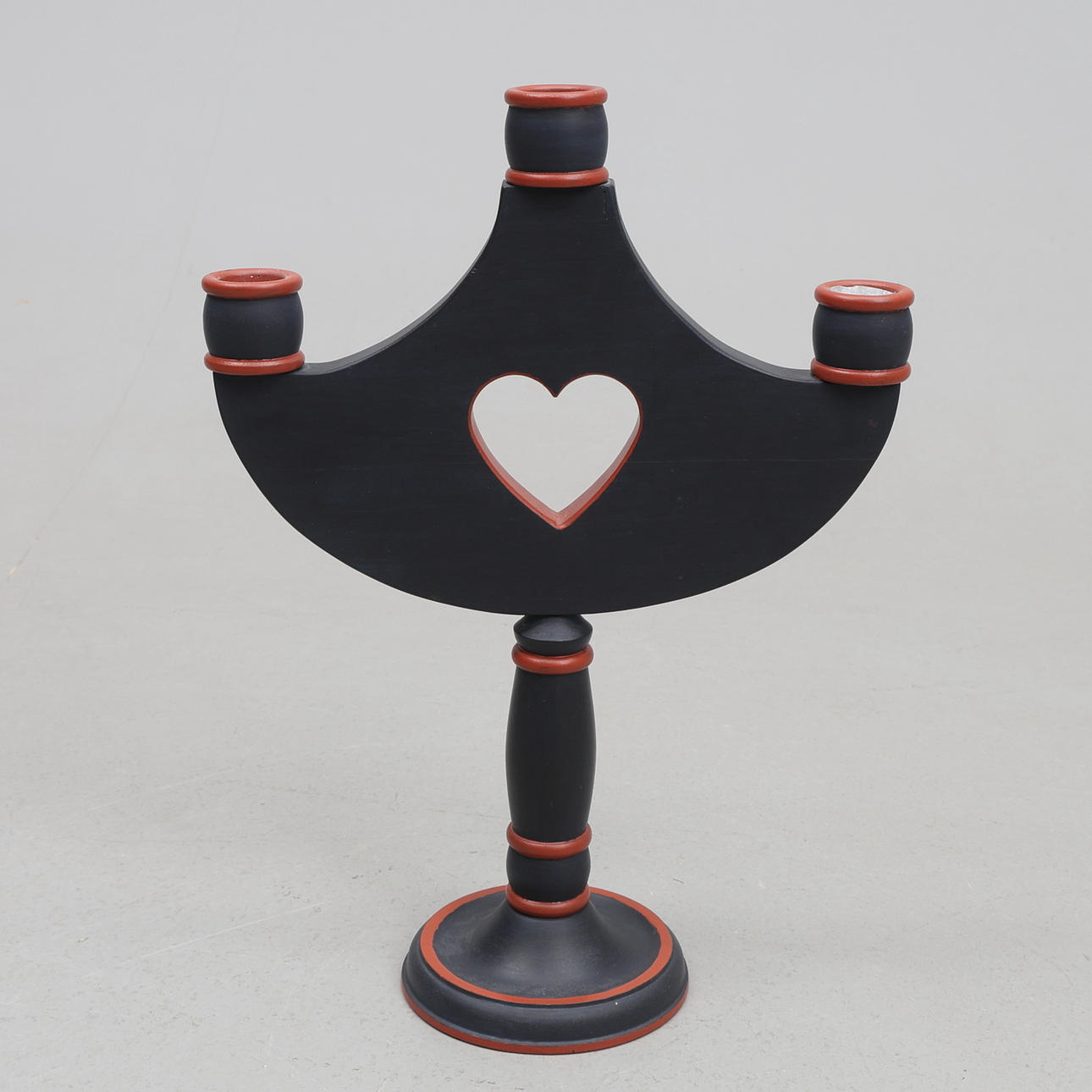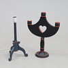Ljusstake och lampfot i trä, daterade 84 och 85 i botten. Höjd ca 44-49 cm, diameter ca 23-36 cm.