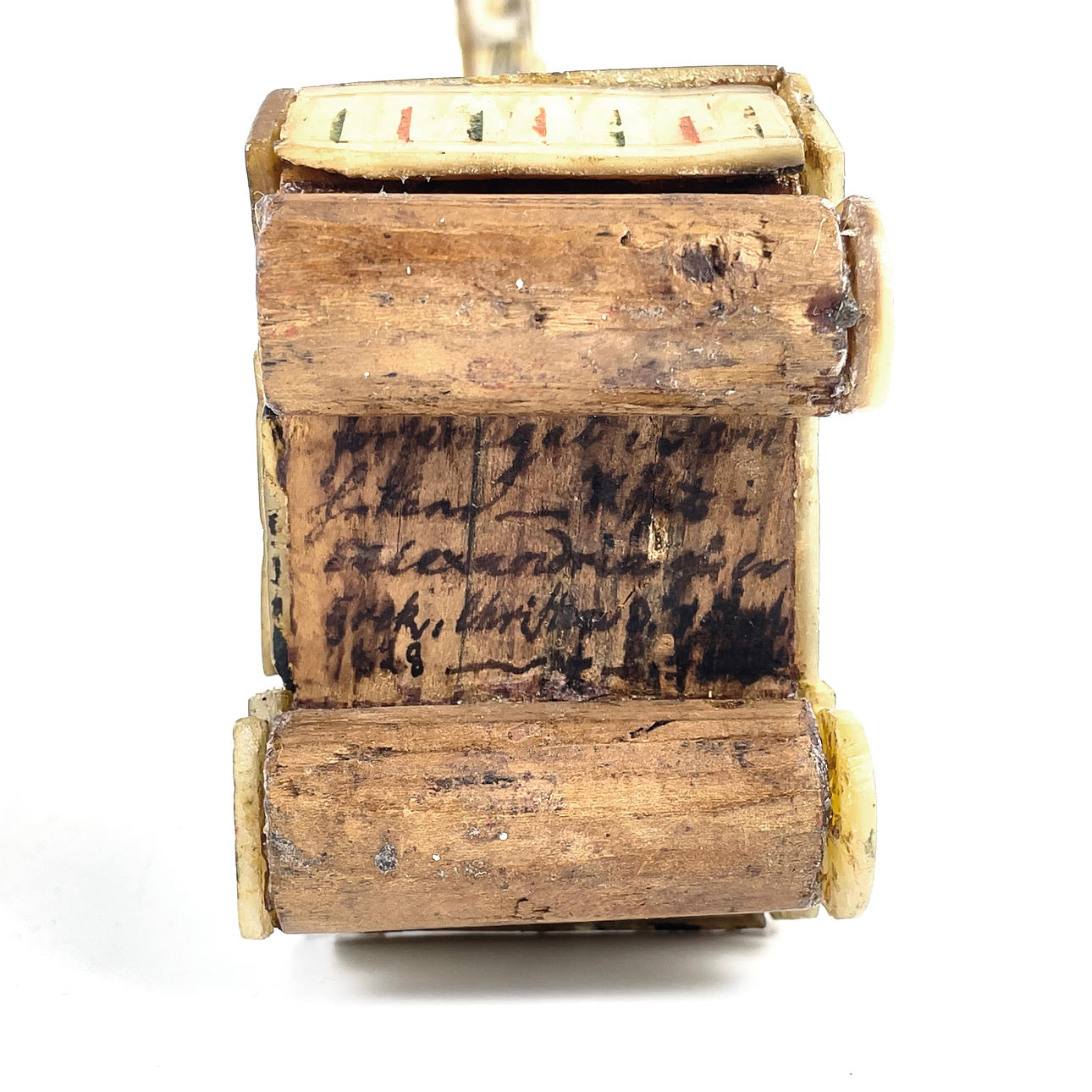 Höjd ca 25 cm. Bredd ca 11 cm, djup ca 4 cm Inköpt i Alexandria 1828 enligt text undertill.
