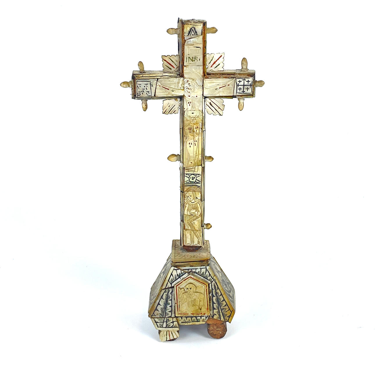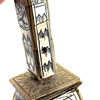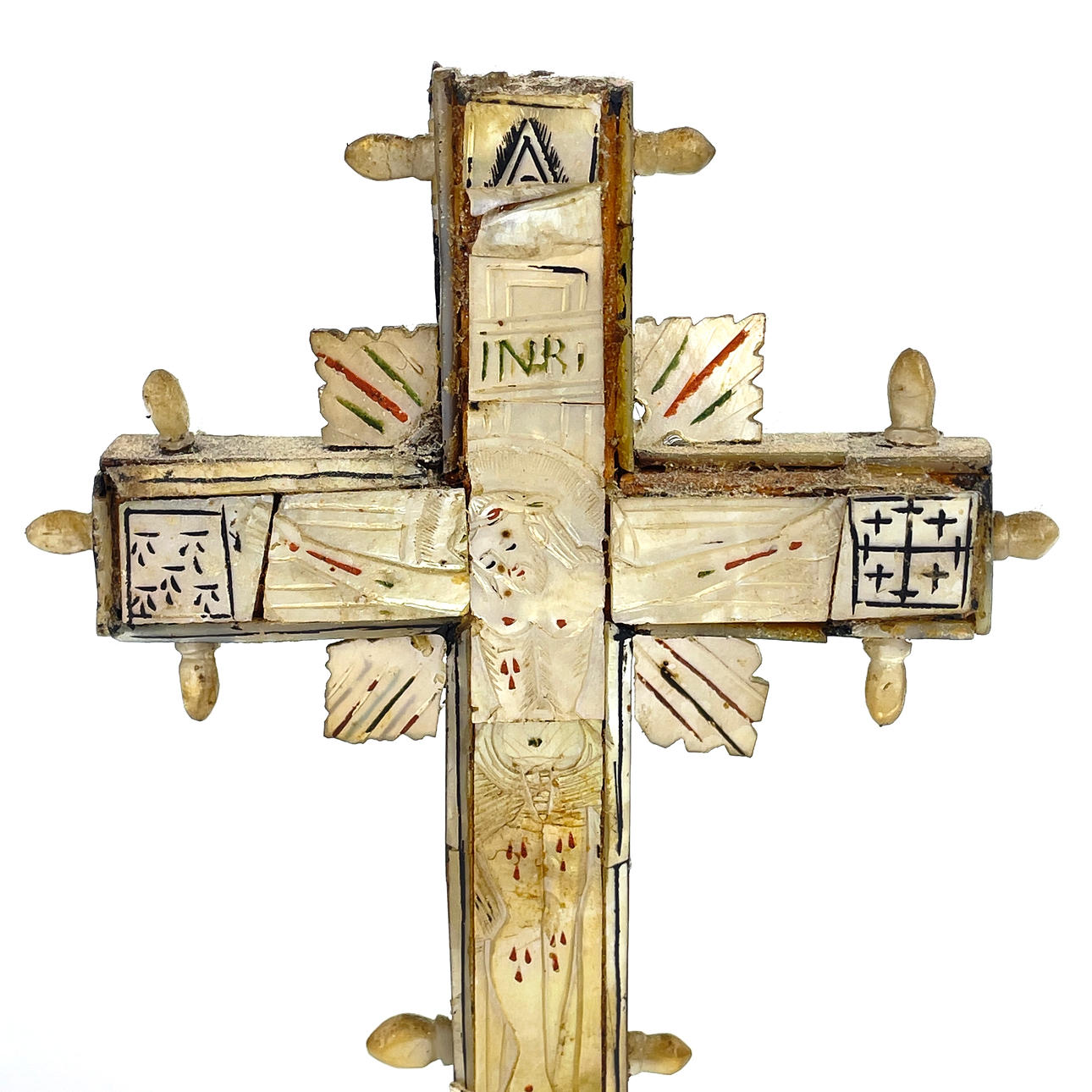 Bruks- och åldersrelaterat slitage. En mindre dekordel saknas. Ena foten med pärlemor bortfall.