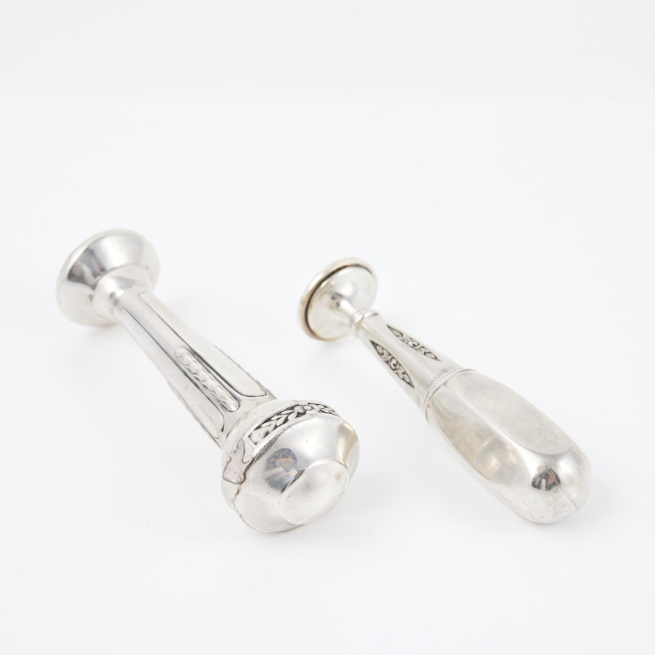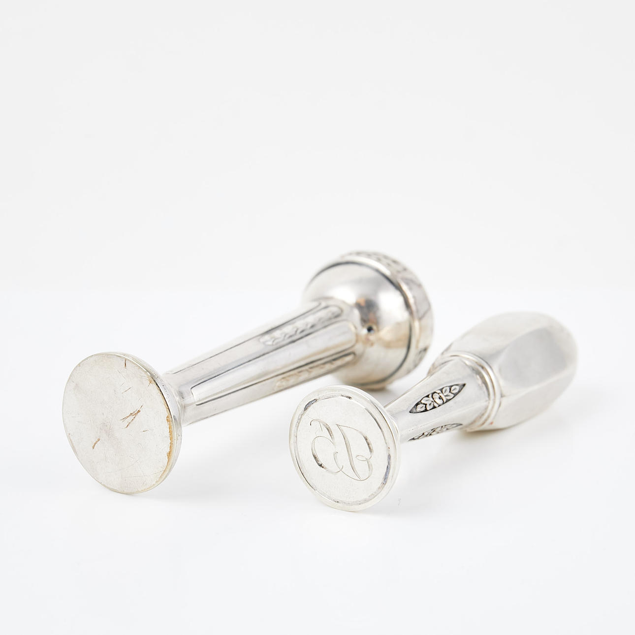 4981526. SIGILLSTÄMPLAR, 2 st, ena med silverstämplar, ciselerad dekor.