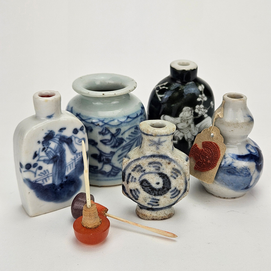 4981797. VASER OCH SNUSFLASKOR, 5 delar, porslin, Kina.