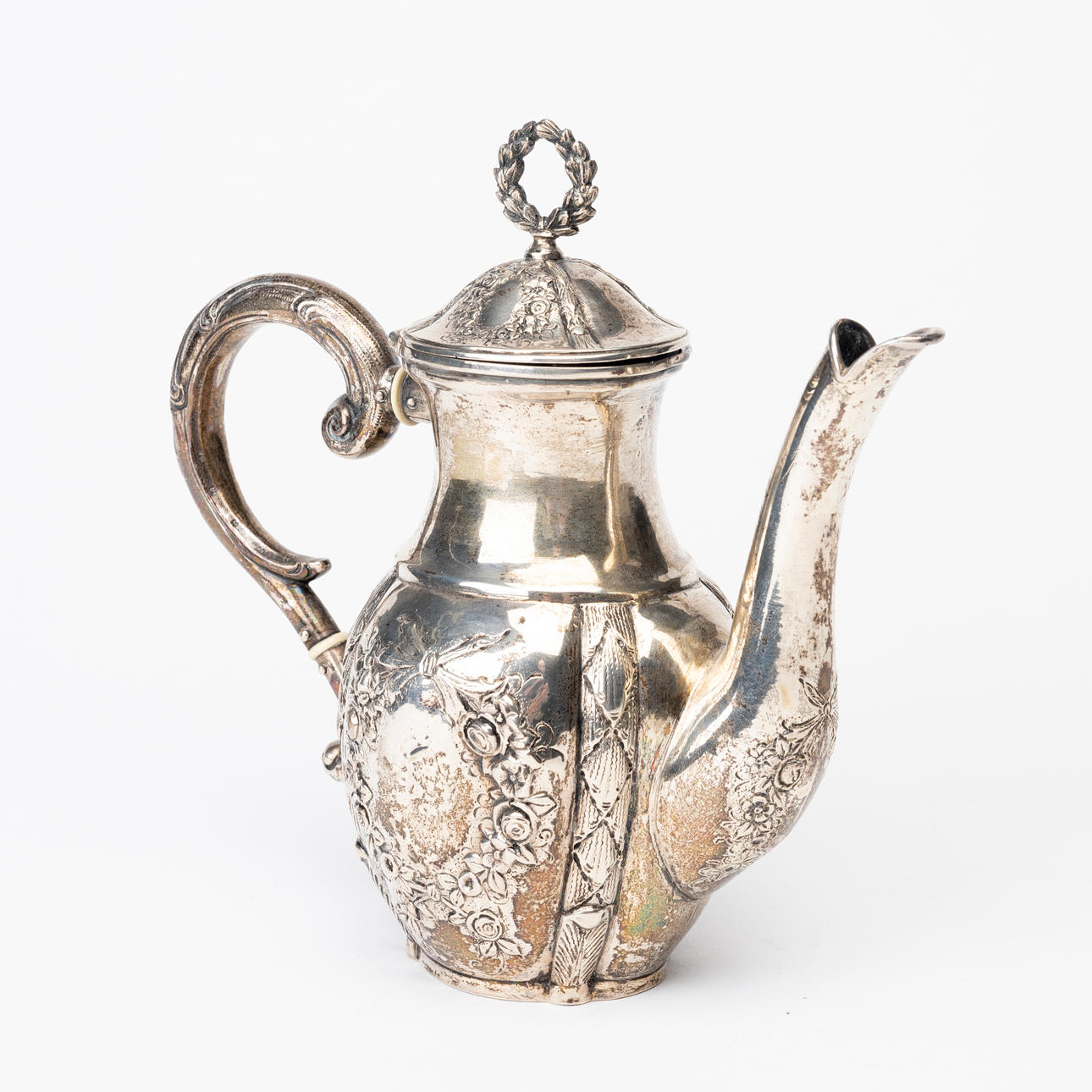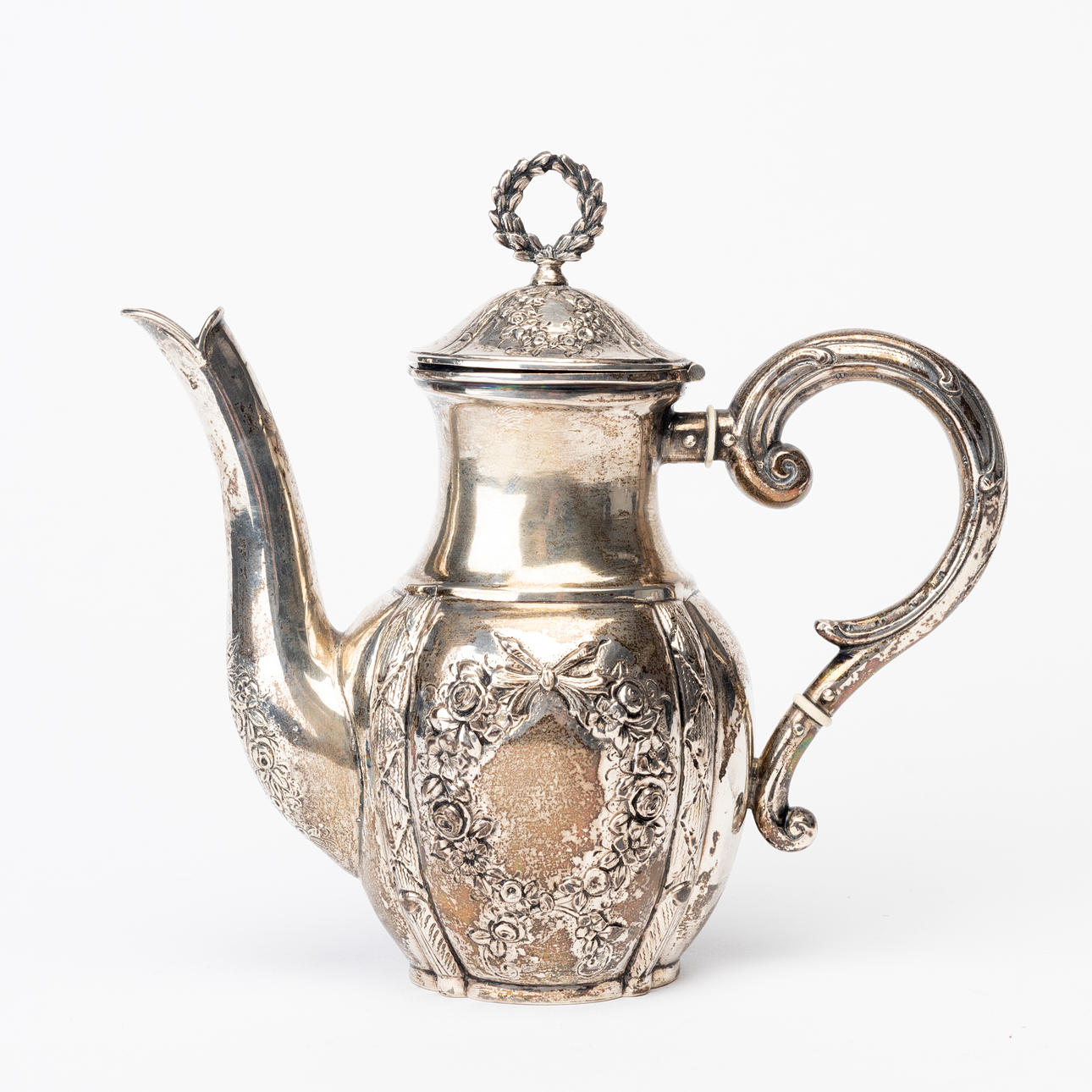 Kaffekanna, längd ca 16 och höjd 15,5 cm.
